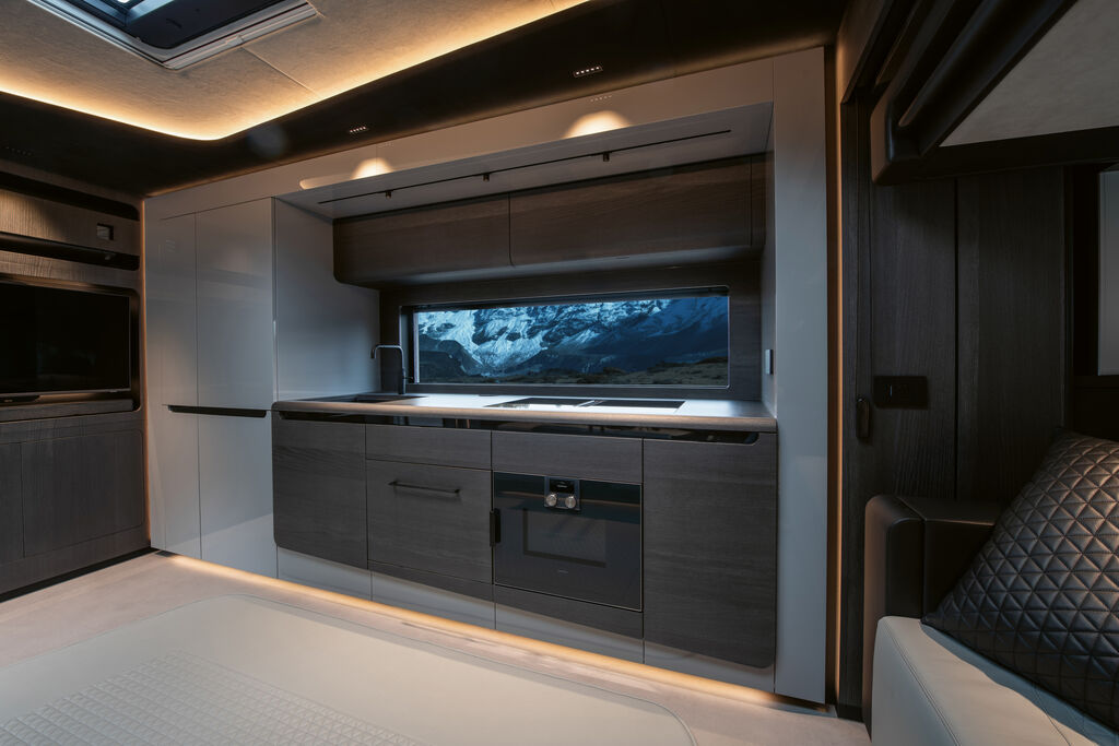 Das Wichtigste ist, dass wir, wenn wir von klassenbester Leistung sprechen, weit mehr meinen als einen starken Antrieb. Leistung ist eine Denkweise. Eine Erlebniswelt. Es geht darum, wie sich ein Produkt verhält und wie es auf seine Umgebung reagiert. Es geht um die Fähigkeit, Leistung, Eleganz, Stil und Design nahtlos so zu kombinieren, dass die Sinne aktiviert werden und ein außergewöhnlicher, unvergesslicher Eindruck entsteht. In diesem Fall war von vornherein klar, dass es ein BRABUS-Reisemobil in jeder Hinsicht sein sollte. Das bedeutet, dass der Leistungsgedanke weit über den Motorraum hinausgehen musste – er musste das gesamte Erlebnis bis ins kleinste Detail prägen.