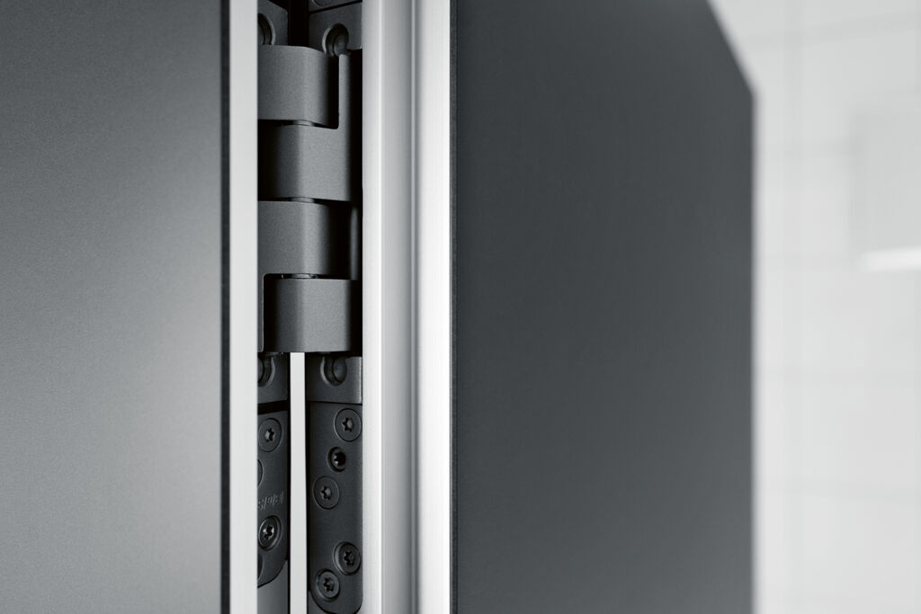 Eine große Herausforderung lag darin, die Anlage trotz automatischem Türantrieb und den damit verbundenen Antriebselementen mit schlanken, filigranen Profilen auszustatten. Speziell das Kopfprofil, das für die Stabilität der Anlage sorgt, stand hier im Fokus. In den ersten Entwicklungsstufen waren es noch schwere und auftragende Kopfprofile, die das Gesamtbild der Anlage störten. Doch dank cleverer Leitungsführung und des innovativen Antriebskonzepts der Türen ist es uns gelungen, hier ein visuelles Highlight zu schaffen und eine elegante, schlanke Lösung zu entwickeln.