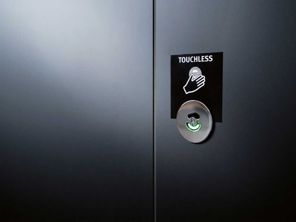 Das gewählte Material ist ein zentraler Bestandteil des hygienischen Gesamtkonzepts von PRIMO Kn Touchless und ergänzt die Formgebung auf ideale Weise. Es handelt sich um eine stabile 42-mm-HPL-Verbundkonstruktion. Die Oberfläche aus HPL ist wasserresistent und bietet somit keinen Nährboden für Bakterien oder Schimmel. Zudem lässt sie sich leicht reinigen und desinfizieren, ohne beschädigt zu werden. Auch die hohe mechanische Belastbarkeit und Widerstandsfähigkeit zählen zu den Vorteilen – gerade in öffentlich zugänglichen Räumen besteht so ein gewisser Schutz vor mutwilligen Beschädigungen.