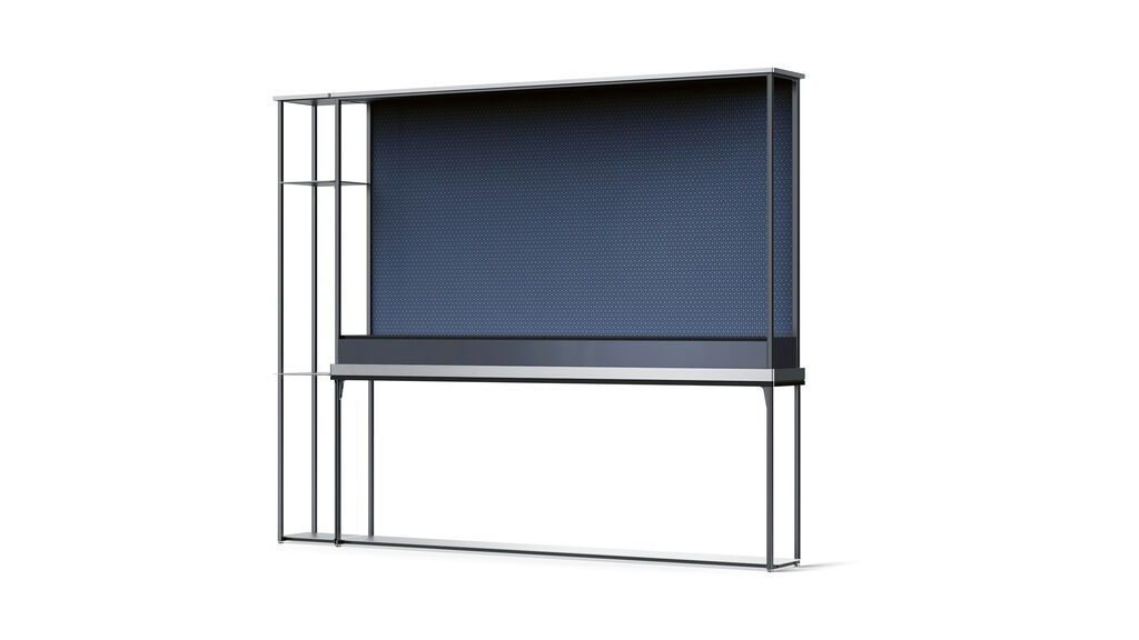 Bevor wir überhaupt an die Form gedacht haben, stand die Erfahrung im Mittelpunkt: Was unterscheidet ein transparentes Display eigentlich von einem herkömmlichen schwarzen Bildschirm? Wir wollten gestalterisch genau diese Differenz betonen – zum Beispiel das Erlebnis, Objekte wie in einem Hologramm frei im Raum schweben zu sehen. So entstand die Idee einer „schwebenden Glasscheibe“, die die technische Transparenz in eine klare visuelle Essenz übersetzt – und sich wie selbstverständlich in den Raum integriert.