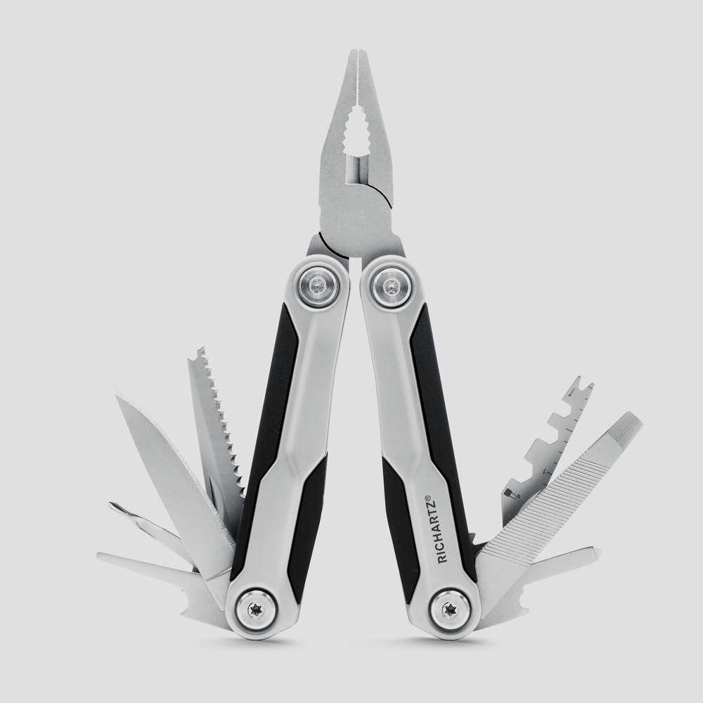 Mit insgesamt 26 nützlichen Funktionen eignet sich das aus rostfreiem Edelstahl und Kunststoff hergestellte Präzisionswerkzeug NEO tool 26+ von Richartz für unterschiedlichste Einsatzbereiche. Bei kleinen Reparaturen im Haushalt oder am Auto kann NEO tool 26+ ebenso gute Dienste leisten wie auf Reisen. Zange, Glasbrecher, Bit-Satz mit 9 Bits, Säge, Feile, Schraubendreher und Zentimetermaß sind nur einige Funktionen, des 258g leichten Multitalents.