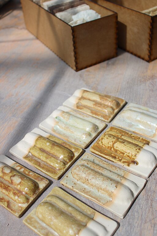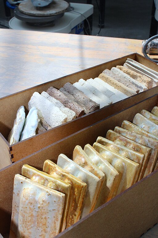 Besonders stolz bin ich auf meine Materialbibliothek. Über die Jahre habe ich mehr als 100 Rezepte entwickelt – von verschiedenen Tonarten über Fliesen mit bis zu 100 Prozent Abfallanteil und einer großen Farbpalette aus Glasuren, die ebenfalls aus Abfall bestehen. Das gibt mir eine starke Basis für die Zusammenarbeit mit Architektinnen, Architekten, Designerinnen und Designern und erlaubt mir, flexibel mit Farbe und Struktur zu arbeiten.