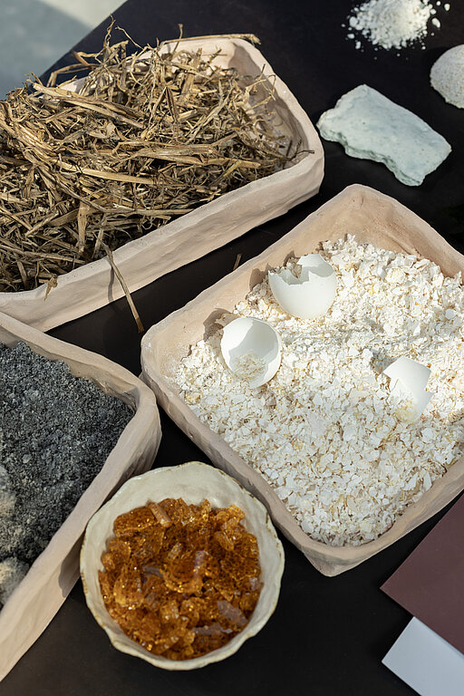 Genauso wichtig sind die Kooperationen selbst – zum Beispiel mit einem dänischen Eierproduzenten, der Eierschalen liefert. Solche Partnerschaften zeigen, dass Abfall zu etwas Wertvollem werden kann und Design durch Zusammenarbeit wächst.
