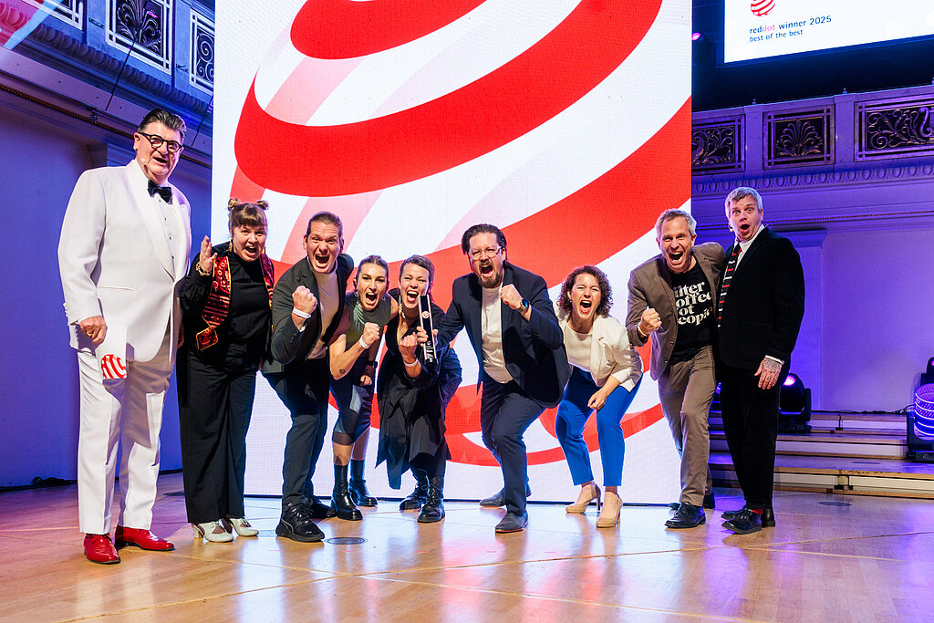 Am 7. November 2025 wurden die herausragendsten Projekte des Jahres und die Kreativen dahinter bei der Red Dot Gala in Berlin gefeiert. Die Zeremonie bildete den Höhepunkt des Red Dot Award: Brands & Communication Design 2025. Die Sieger des Red Dot: Best of the Best wurden auf der Bühne geehrt und erhielten unter großem Applaus ihre Trophäen. Gäste aus 33 Nationen reisten zu diesem Anlass nach Berlin.