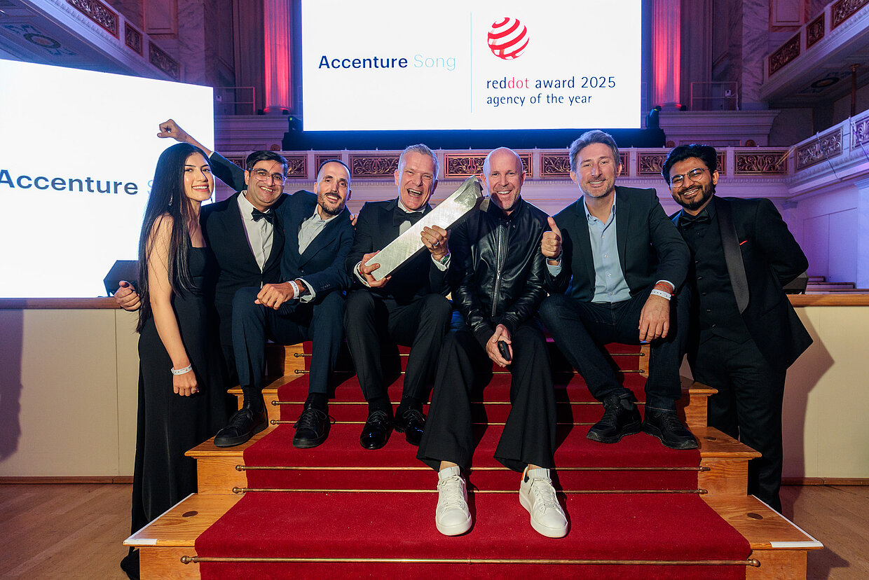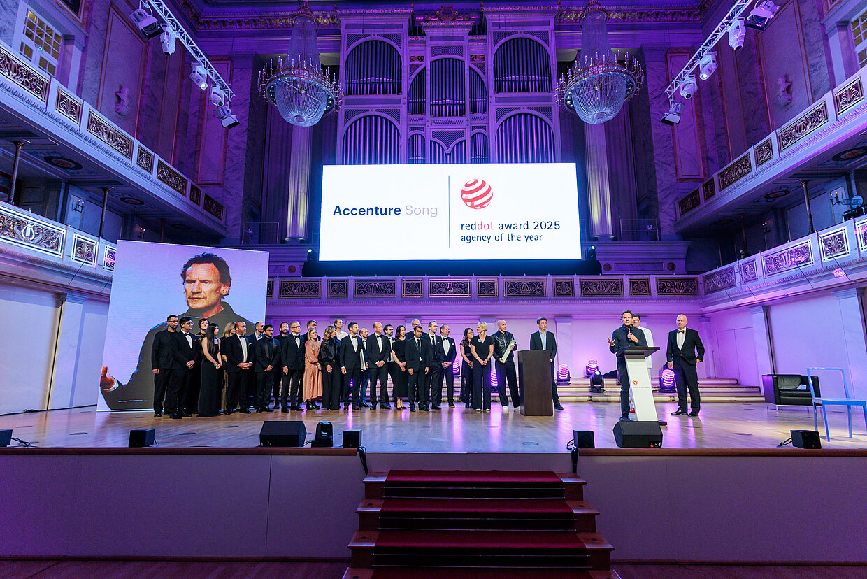 Die Ehrung von Accenture Song als Red Dot: Agency of the Year 2025 bildete den Höhepunkt der Red Dot Gala und würdigte die herausragenden kreativen Leistungen von Accenture Song. Politik-Berater Dr. Günther Bachmann hielt eine inspirierende Laudatio zu Ehren der Agentur: „Der Beiname ‚Song‘ ist programmatisch. Er erinnert uns daran, wie ein Unternehmen der nächsten Generation sein sollte: Es sollte Menschen bewegen, Information mit Emotion verbinden, Verbindungen schaffen und inspirieren. Mit anderen Worten: Tun Sie das, was Mainstream-Erzählungen nur selten tun. Lassen Sie Ihre Geschichte beim Publikum nachklingen – wie ein guter Song. Ein Song, den man nicht vergisst.“