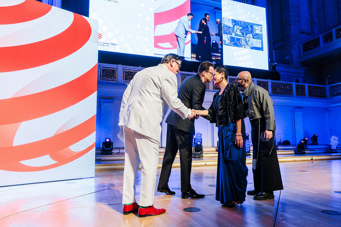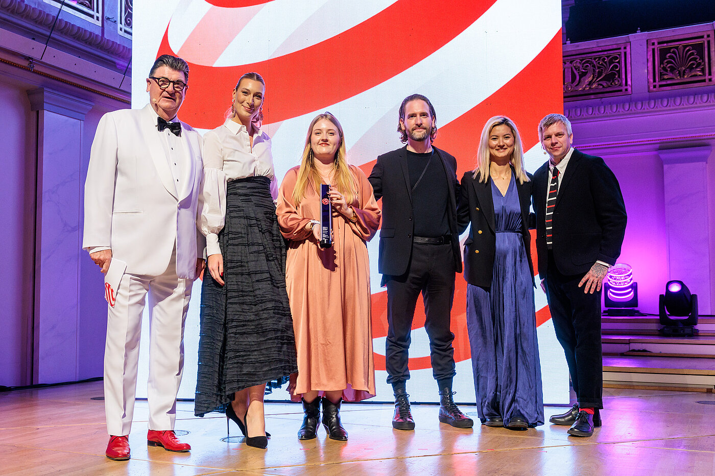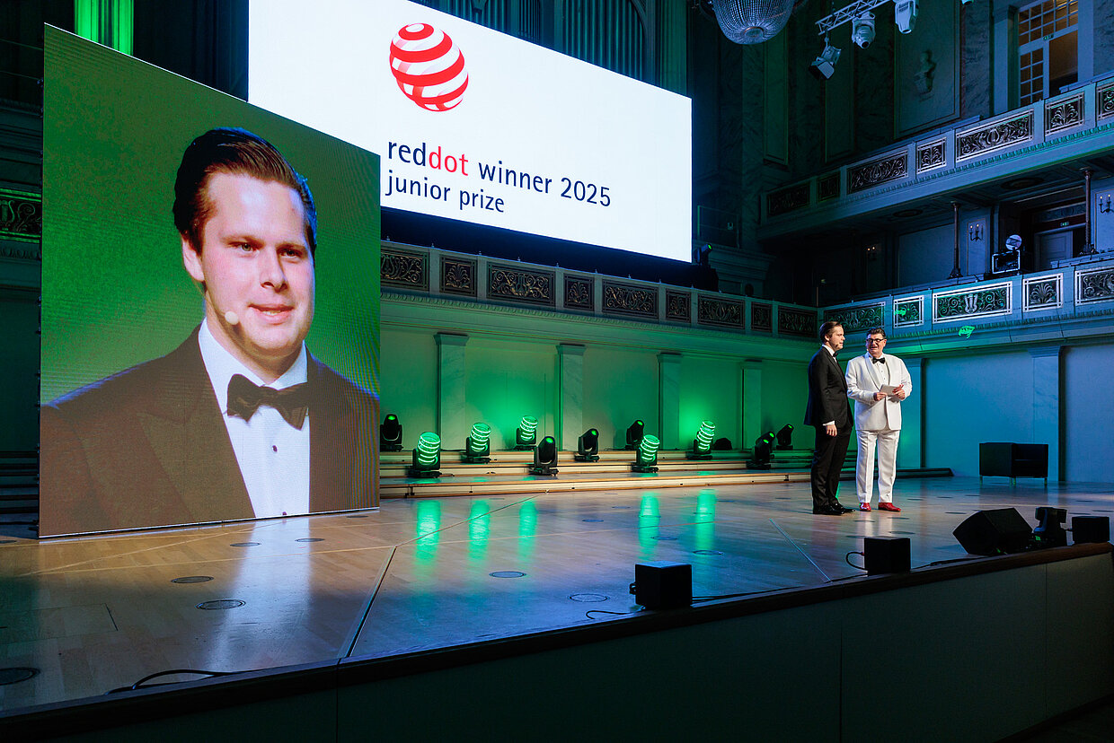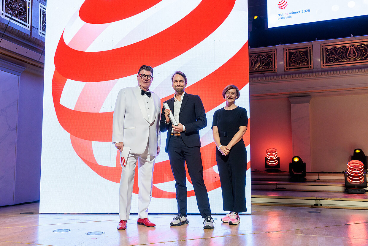 Als einer der renommiertesten Kulturorte Deutschlands war das Konzerthaus Berlin bereits Schauplatz unzähliger Weltklasse-Aufführungen – ein passender Rahmen, um herausragende Leistungen in Design und Kreativität zu würdigen. Professor Dr. Peter Zec, Initiator und CEO von Red Dot, moderierte den Abend und überreichte gemeinsam mit den Red Dot Jury-Mitgliedern Thilo von Debschitz, Matthew Hock und Špela Čadež die Trophäen an die Sieger.