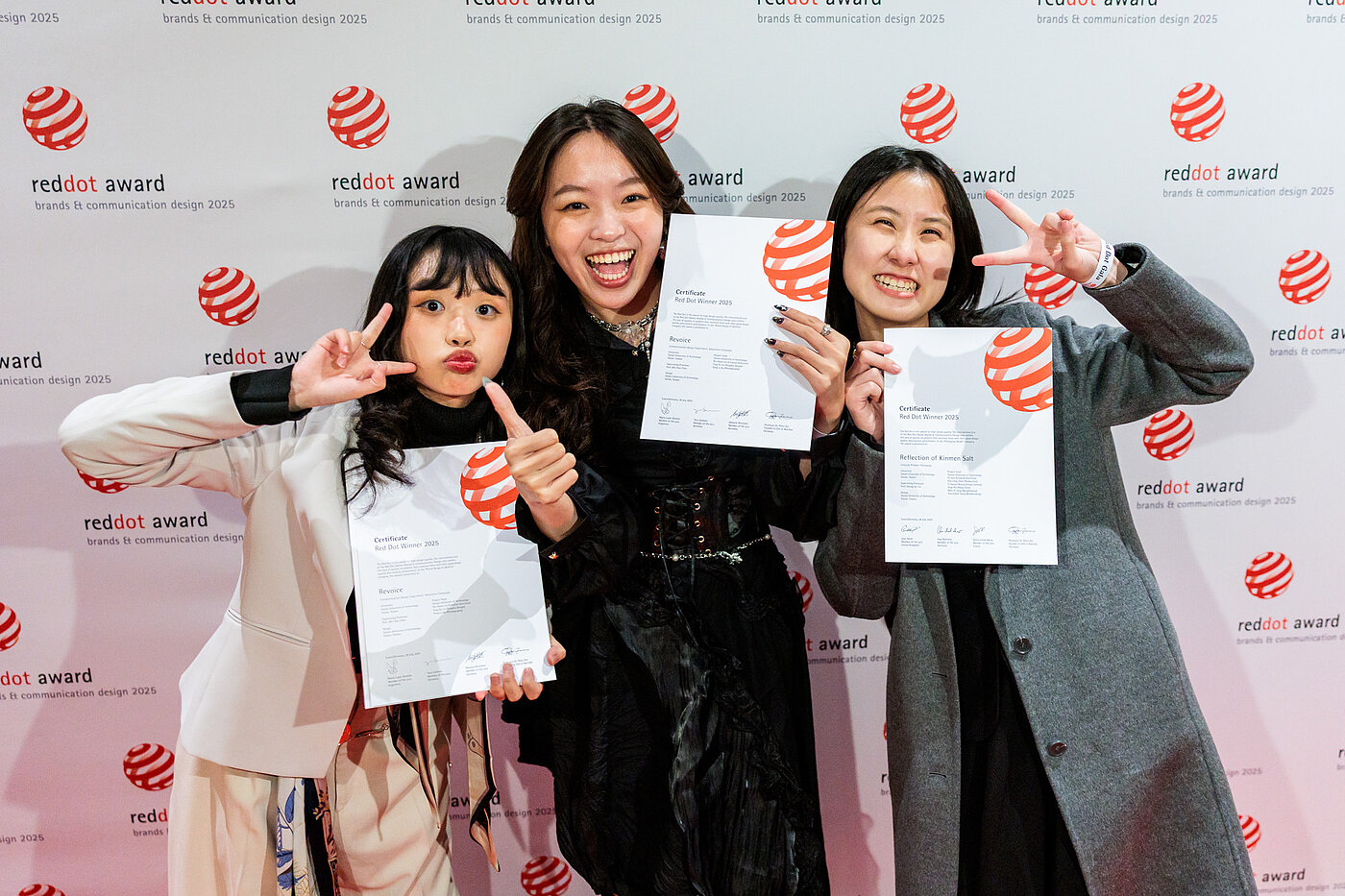 Eine besondere Ehre wurde den Siegern des Red Dot: Grand Prix zuteil, die die Red Dot Jury durch ihre außergewöhnliche Kreativität, Designqualität und wirkungsvolle Kommunikation zur Vergabe der höchsten Auszeichnung überzeugten. Ein weiterer Höhepunkt war die Verleihung des Red Dot: Junior Prize an Studenten der Ling Tung University. Die Ehrung von Accenture Song als Red Dot: Agency of the Year 2025 bildete den krönenden Abschluss der Gala, gefolgt von der Designers‘ Night, der feierlichen After-Show-Party.
