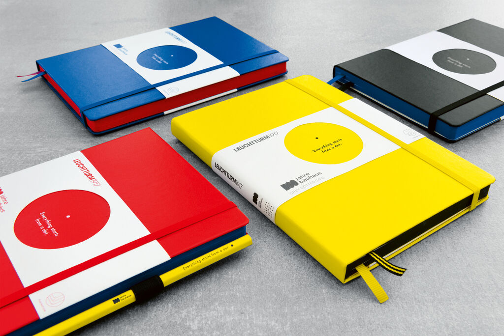 LEUCHTTURM1917 feiert die Geometrie des Designs und 100 Jahre Bauhaus mit der aus Notizbüchern, Bleistiften, Pen Loops und einem Display bestehenden Edition. Die Primärfarben der Artikel und die Struktur des Displays spiegeln in ihrer Klarheit und Reduktion sowie mit funktionalen Details den Stil der berühmten Schule wider. Die Produkte tragen das offizielle Jubiläumslogo der Bauhaus Kooperation Berlin Dessau Weimar gGmbH und ein Zitat des Lehrers Wassily Kandinsky: „Everything starts from a dot.“ („Alles beginnt mit einem Punkt.“)