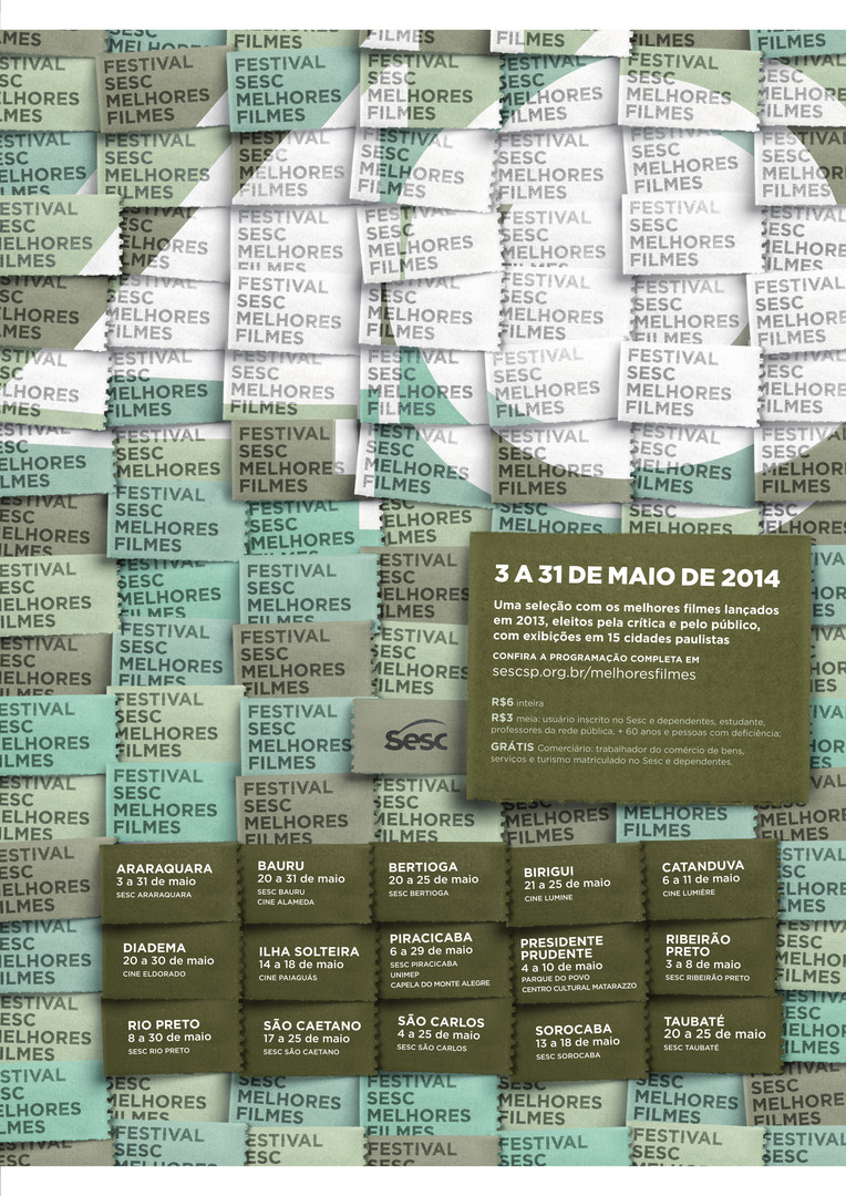 The 40th Festival Sesc Melhores Filmes is the oldest and largest film festival in São Paulo, Brazil, exhibiting a vast selection of films to a wider audience at affordable prices. The new visual identity portrays the immense number of movies exhibited and the event’s wide audience appeal through a seemingly infinite collection of piled movie stubs – one of the most popular icons from the film universe. The tickets create a flexible visual system that can be adapted across different formats, sizes and media according to the information communicated.
