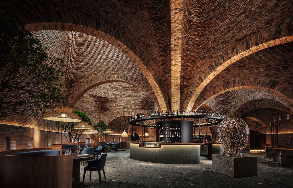 Bei diesem Interior Design verschwimmen der Außen- und Innenbereich zu einem sinnlichen Gesamterlebnis. Es wird dabei in jedem Detail spürbar, dass der Mensch im Mittelpunkt stehen soll. Die Konstruktion aus Natursteinen verleiht der Architektur eine starke Präsenz und zugleich eine natürliche Eleganz, die das Alte und das Neue in Balance zu bringen weiß. Besonders faszinierend ist, wie das Licht in das Innere des konisch gestalteten Bauwerks fällt.