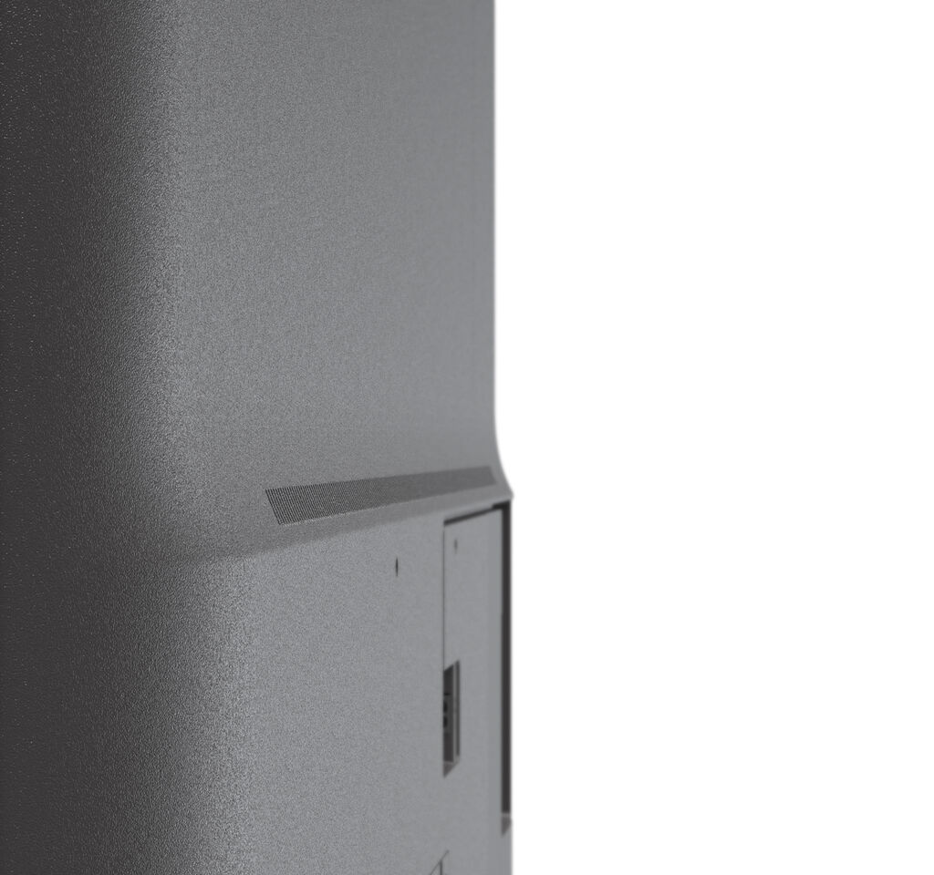 Die Entwicklung des UHD-Fernsehers 65UA75 zielte darauf ab, den technischen Charakter des Gerätes in den Hintergrund zu rücken und ihm stattdessen die Anmutung eines Wohnaccessoires zu verleihen. Daher sind alle außenliegenden Schrauben verborgen und die Lüftungsschlitze so gestaltet, dass sie von vorn nicht sichtbar sind. Auch das CMF-Konzept ist auf die Integration ins Wohnumfeld ausgerichtet. Die Oberflächenstruktur vermittelt die raue, unregelmäßige Haptik von Naturstein – ein Eindruck, der durch die graue Farbgebung verstärkt wird.