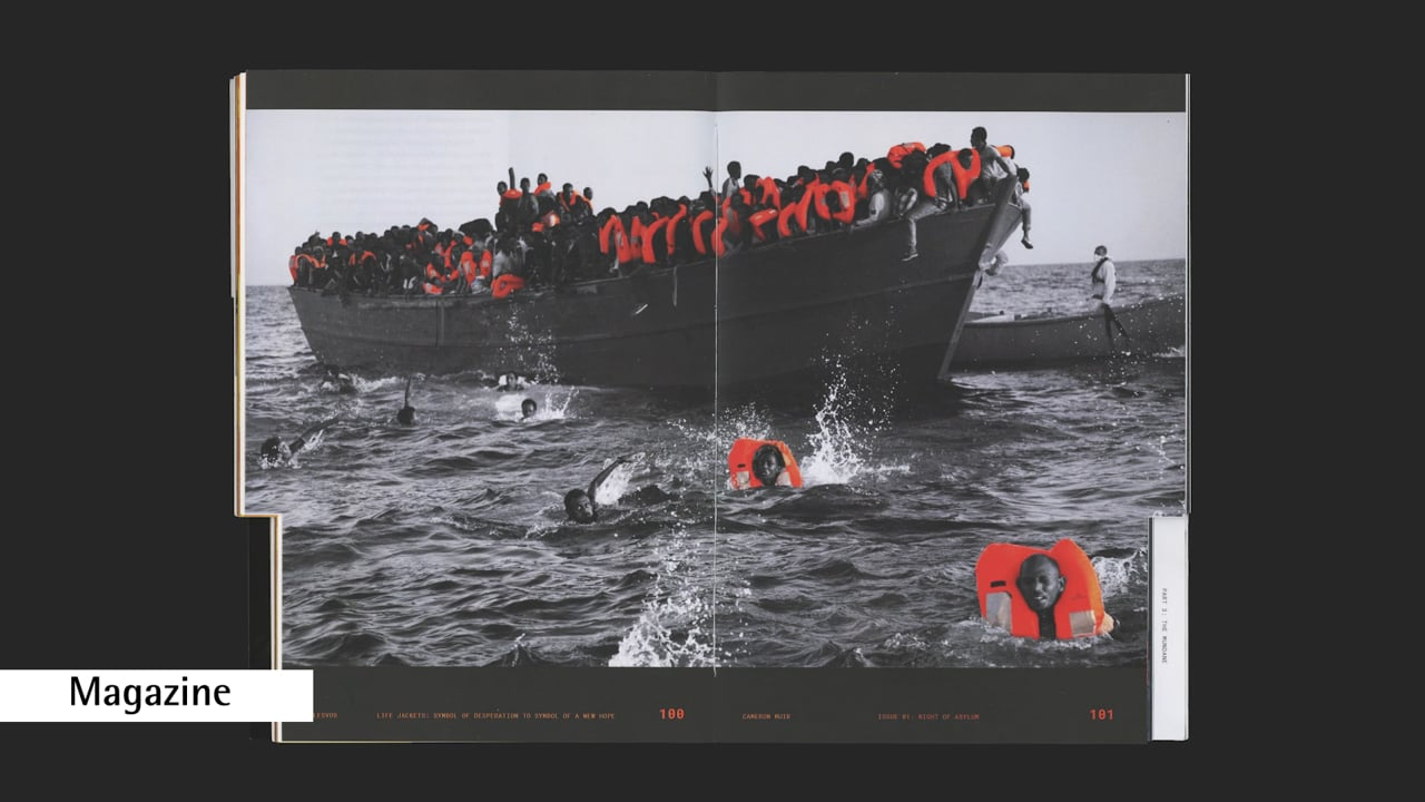 A–B magazine is about the movement and migration of people and, against the backdrop of the current refugee crisis, explores the underlying forces of safety, security and refuge. In three chapters – “Contemplation” on our inner self and the universal desire to seek safety, “Refugee Crisis” on the refugees and their struggles around the world and “The Mundane” with a view on our regular asylum camps – the magazine aims at a better understanding of the asylum seekers. With a study of the history of migration, going back to Adam and Eve, as well as numerous impressive photographs and drawings by refugee children, the subject is examined from many different angles in words and images. The relevance of the topic is underlined by the orange colour that runs through the entire book and is also featured on the outside, in the form of a fluorescent zip pouch made from the characteristic ripstop nylon of refugee lifejackets.