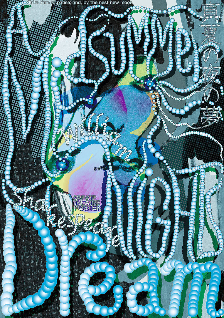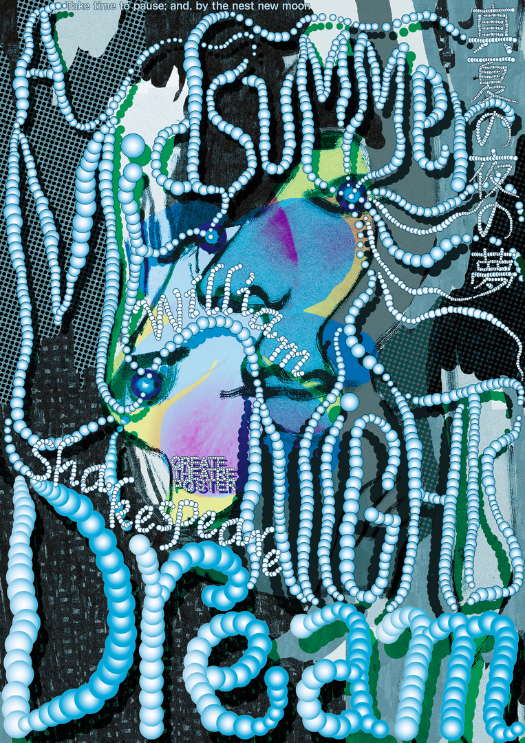 William Shakespeare’s comedy “A Midsummer Night’s Dream” is set in ancient Athens and a nearby enchanted forest which is inhabited by fairies who are also important characters of the play. The poster conveys the endless storm of emotions typical of Shakespeare’s works. This is made possible by the use of vibrant, space-filling bilingual typography which additionally intensifies the emotional impact.