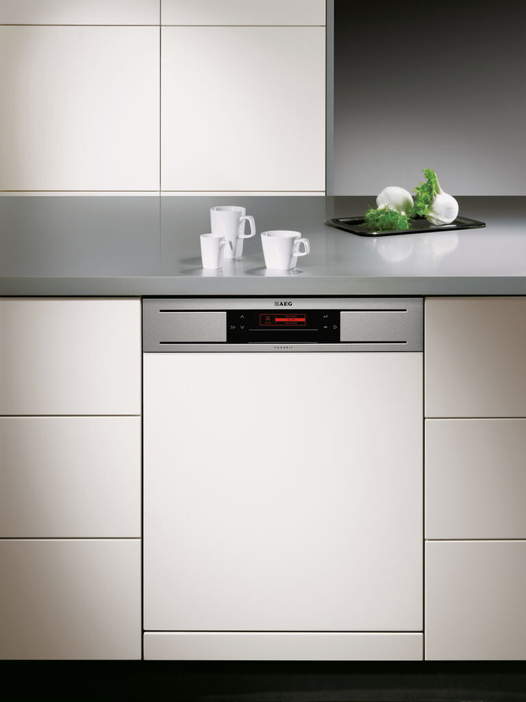 Passend zu den anderen Geräten dieser Baureihe folgt dieser Einbau-Geschirrspüler einem stringenten Gestaltungskonzept. Das integrierbare Gerät fügt sich harmonisch in die Küchenzeile ein und lenkt die Aufmerksamkeit des Betrachters auf die ästhetisch eingefasste Bedienleiste. Visuell reizvoll stehen Glas- und Edelstahl-Flächen im Kontrast zueinander. Die seitlichen Metall-Aussparungen verleihen der Gerätefront eine ansprechende Dynamik. Die charakteristische Formensprache unterstreicht die hohe Funktionalität der innovativen Touch-Benutzeroberfläche inklusive Display. Der Geschirrspüler ist in XXL sowie in der Frontbreite von 60 cm und 45 cm erhältlich. Technische Details, wie ein Satelliten-Sprayarm oder variable Geschirrkörbe, runden das Konzept ab.