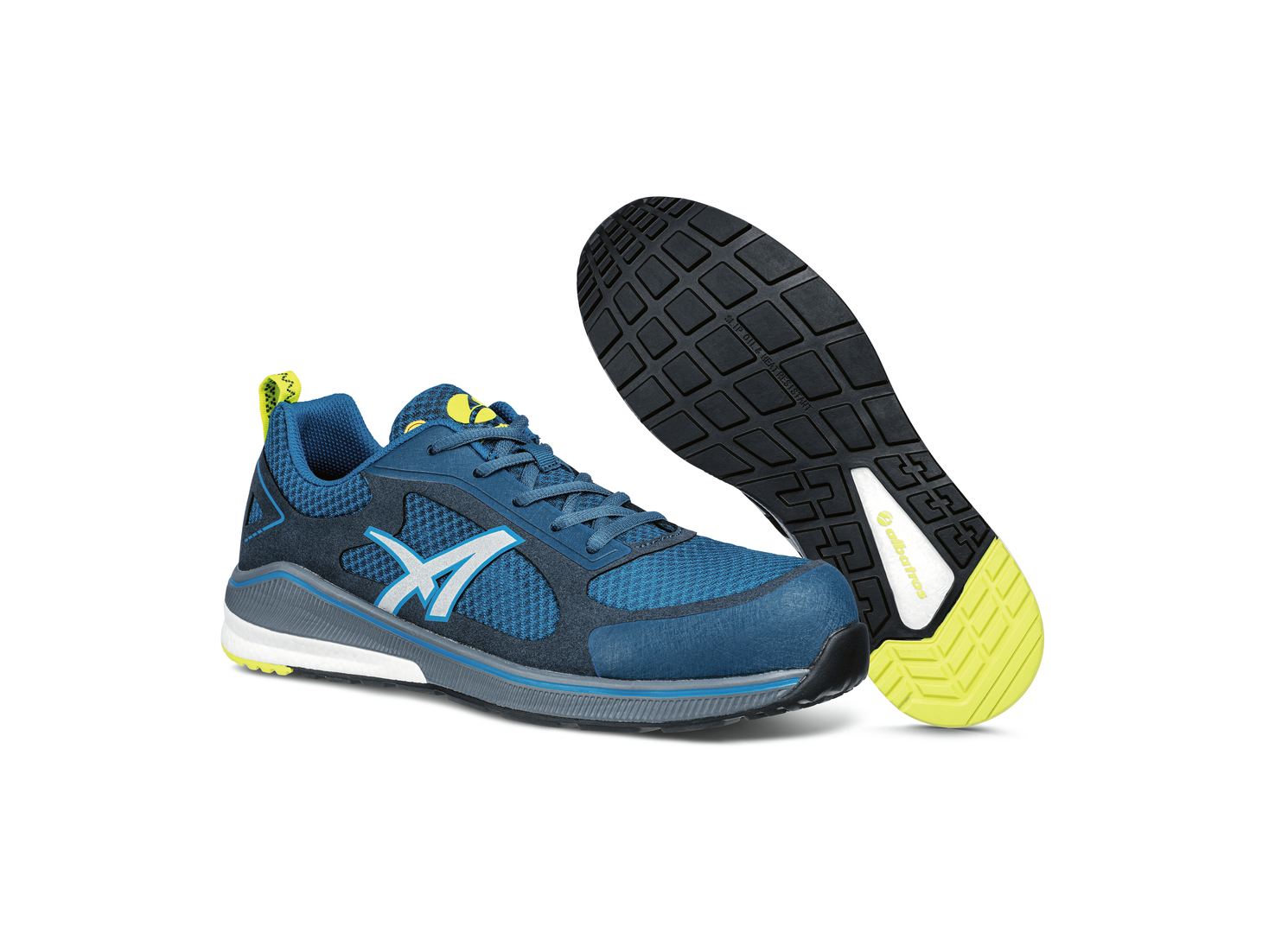 Der vegane ALBATROS AER58 BLUE LOW ist mit einer neuartigen Zwischensohle ausgestattet, die weit unter den Mittelfuß reicht. Sie besteht aus kleinen, gut dämpfenden Kugeln, die im Produktionsprozess zu einem Element vereint werden und so eine wirkungsvolle Energierückgabe erreichen. Der Schaft besteht aus transparentem, atmungsaktivem Textilgewebe und Mikrofaser. Als Verstärkung wurden zusätzliche nahtlose Mikrofaser-Elemente aufgebracht und stark beanspruchte Stellen mit TPU-Elementen versehen. Die zweifarbige, rutsch- und abriebfeste Sohle sorgt für dynamische Dämpfung und Stabilität. Eine Fiberglas-Schutzkappe unterstreicht das athletische Aussehen des optisch ansprechenden Schuhs.