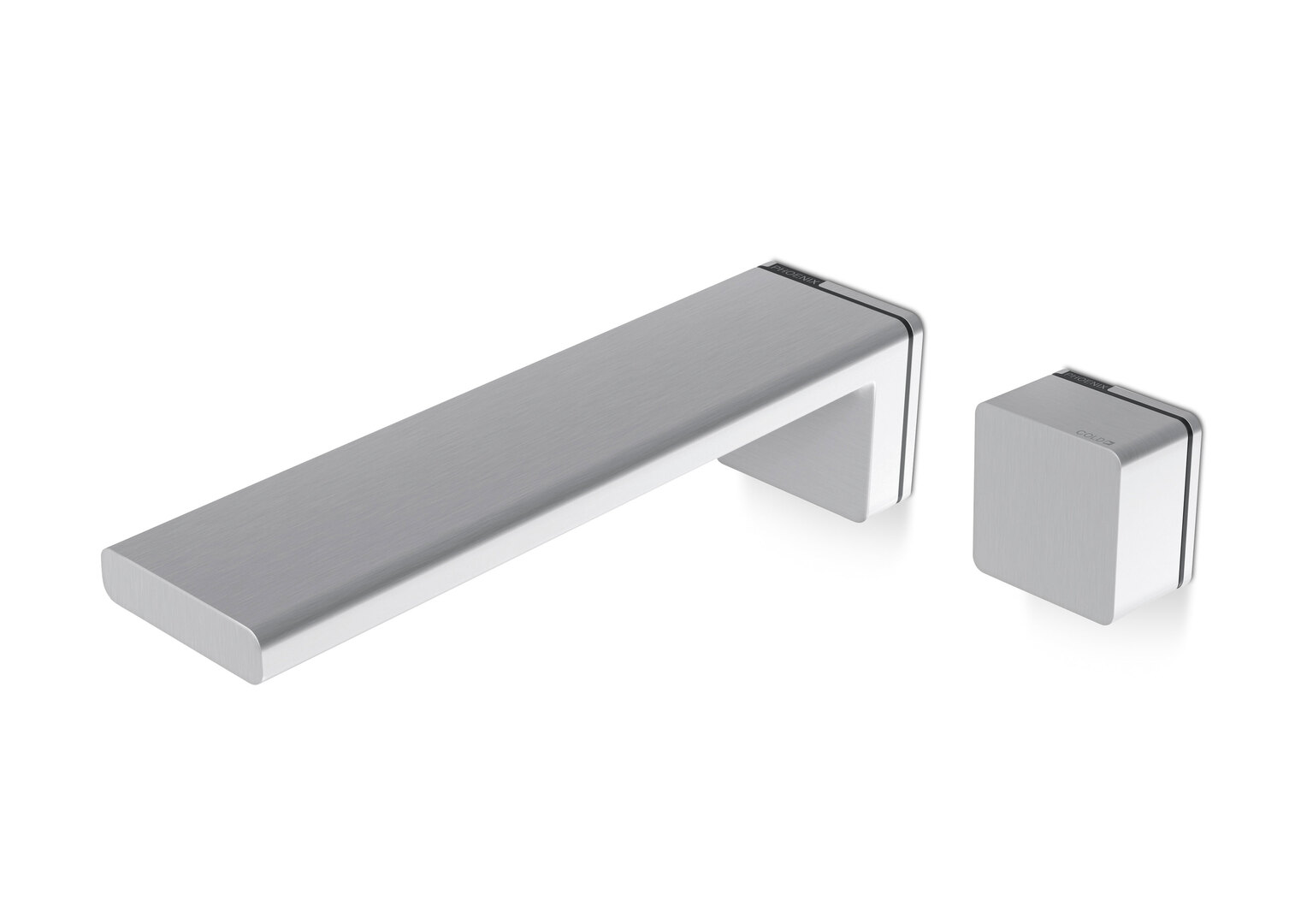 Ein flaches Rechteck mit leicht abgerundeten Kanten bildet den Auslauf des Waschtischmischers Alia. Seine quadratische Wandhalterung korrespondiert mit dem ebenfalls quadratisch geformten Regler. Nach den Prinzipien des Minimalismus konzipiert, konzentriert sich die Konstruktion auf das Wesentliche. Die reduzierte geometrische Anmutung ist schlicht und ausdrucksstark zugleich. Die beiden Elemente bilden eine charaktervolle Einheit, die sich platzsparend und stilsicher vor allem in das moderne Bad einfügt.
