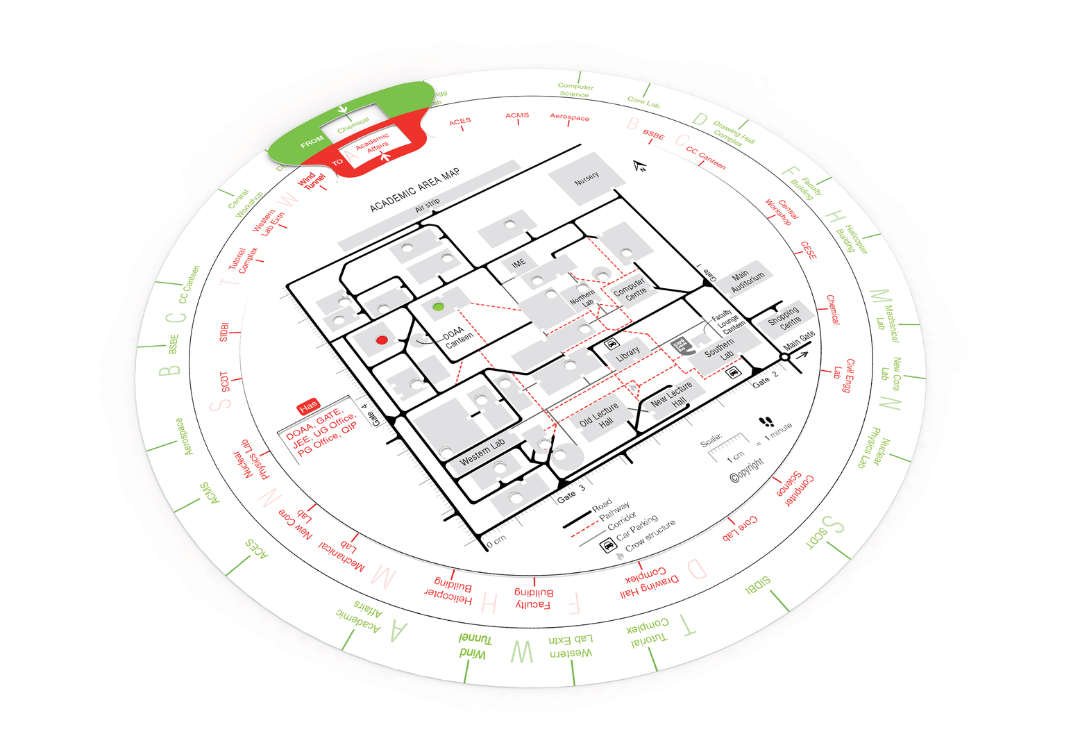 Fun and easy to use, ALIGNO is a college campus map that stands out for its clever reimagining of a paper map’s functionality. Users begin by marking out their current locations and intended destination with coloured spots by rotating the map’s circular layers. This simple mechanism helps users deduce the relative distance between locations, which they can then use to plan routes based on indicated landmarks and walking paths.