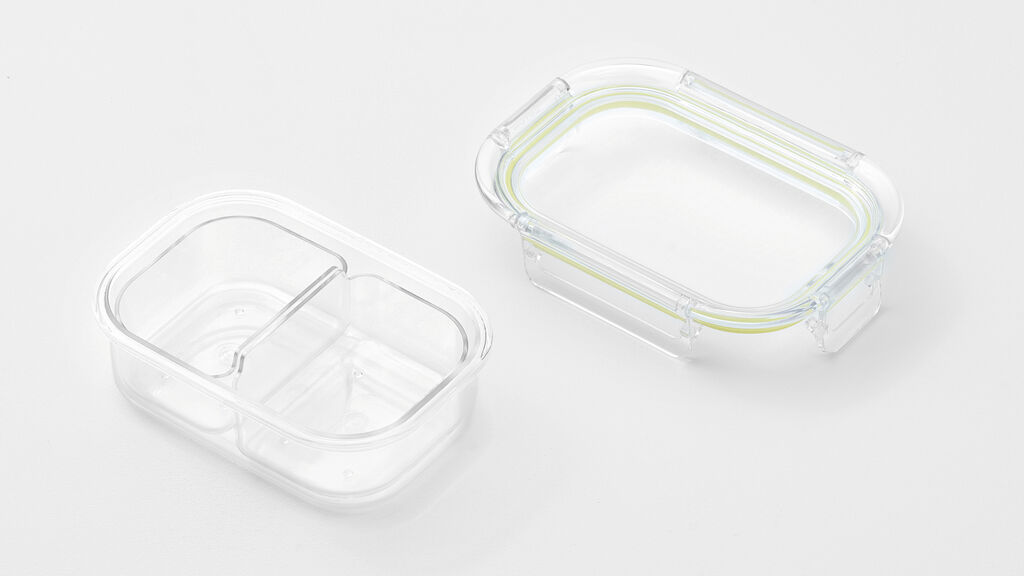 Die Aufbewahrungsboxen All Tritan Food sind durchgehend aus dem robusten und lebensmittelechten Kunststoff Tritan gefertigt. Man kann die Behälter von allen Seiten einsehen und die gewölbten Ränder der Deckel verhindern ein Verrutschen und Umkippen, wenn mehrere Boxen übereinandergestapelt sind. Die Verschlüsse fügen sich nahtlos in den Deckel ein; auch eine Lippe, die dem besseren Halt beim Öffnen und Verschließen dient, wurde an der Innenseite angebracht. So ergibt sich ein harmonischer, formschöner Gesamteindruck.