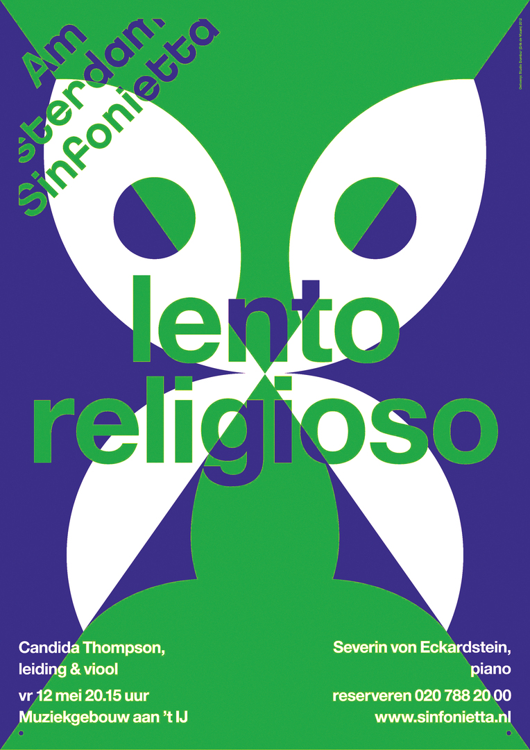 The new design of the poster series for the Amsterdam Sinfonietta aims to distinguish the independent music ensemble from the “grey” existing mass of classical music programmes. It likewise sets out to mark the Amsterdam Sinfonietta brand as individual, modern, and geared towards a younger target group. The appearance of the new posters goes beyond just listing concert information. Following an idiosyncratic approach, the design reflects the atmosphere of the concerts so that each poster may be viewed as an independent interpretation of a musical theme.