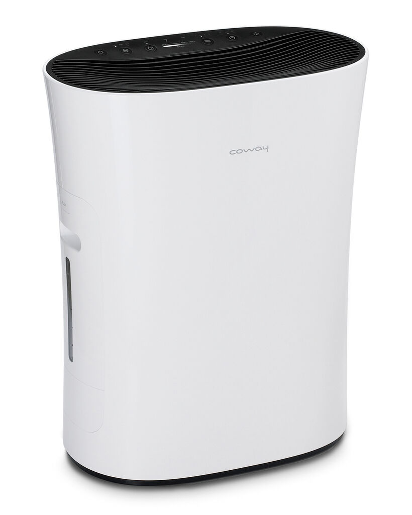 Der APMS-1014D ist ein innovativer Luftreiniger und -befeuchter, der feine Wassertröpfchen in die nach außen abgegebene Luft versprüht. Für einen hohen Hygienestandard sorgt die elektrolytische Sterilisation, durch die 99,99 Prozent aller Bakterien und Viren aus dem Wasser entfernt werden. Das schlanke Erscheinungsbild des Geräts ist durch weiche Kurven geprägt. Die Funktionstasten an der geschwungenen Oberseite sind leicht geneigt und ergonomisch positioniert.