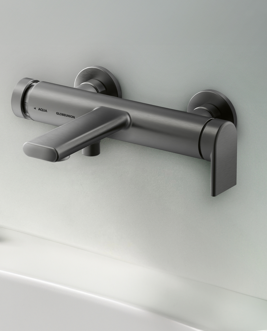 AQUA zeichnet sich durch eine spezielle Druckknopffunktion aus, die es dem Nutzer ermöglicht, intuitiv zwischen dem Dusch- und dem Wannenauslauf zu wechseln. Eindeutige Symbole lassen bereits vor dem Gebrauch erkennen, welcher Auslass gerade aktiviert ist. Der ergonomische Hebel auf der rechten Seite erlaubt die präzise Steuerung von Wassertemperatur und Durchflussmenge. Ausgewogene Proportionen und sanft gerundete Kanten sorgen in Verbindung mit der anthrazitfarbenen Oberfläche für ein elegantes Erscheinungsbild.