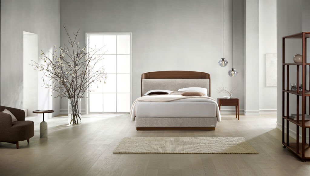 Indem ARNO-II „eine elegant anmutende Formgebung zeigt, die Komfort vermittelt und darüber hinaus zeitgemäße Funktionalität bietet“, erhielt dieses Bett die Anerkennung der Jury. Die Gestaltung des sanft gewölbten Kopfteils wurde von den Flügeln eines Schwans inspiriert, wobei der Holzrahmen aus Nussbaumfurnier besteht, um den Holzverbrauch zu reduzieren. Zudem werden die Bezüge der vorgelagerten Polster aus recycelten Plastikflaschen hergestellt. Zwei USB-Anschlüsse, eine dimmbare LED-Beleuchtung sowie ein ins Kopfteil integrierter Stauraum sorgen für zusätzlichen Nutzwert. Angenehmen Liegekomfort ermöglicht das Zusammenwirken einer Untermatratze mit einer hohen Komfortmatratze.