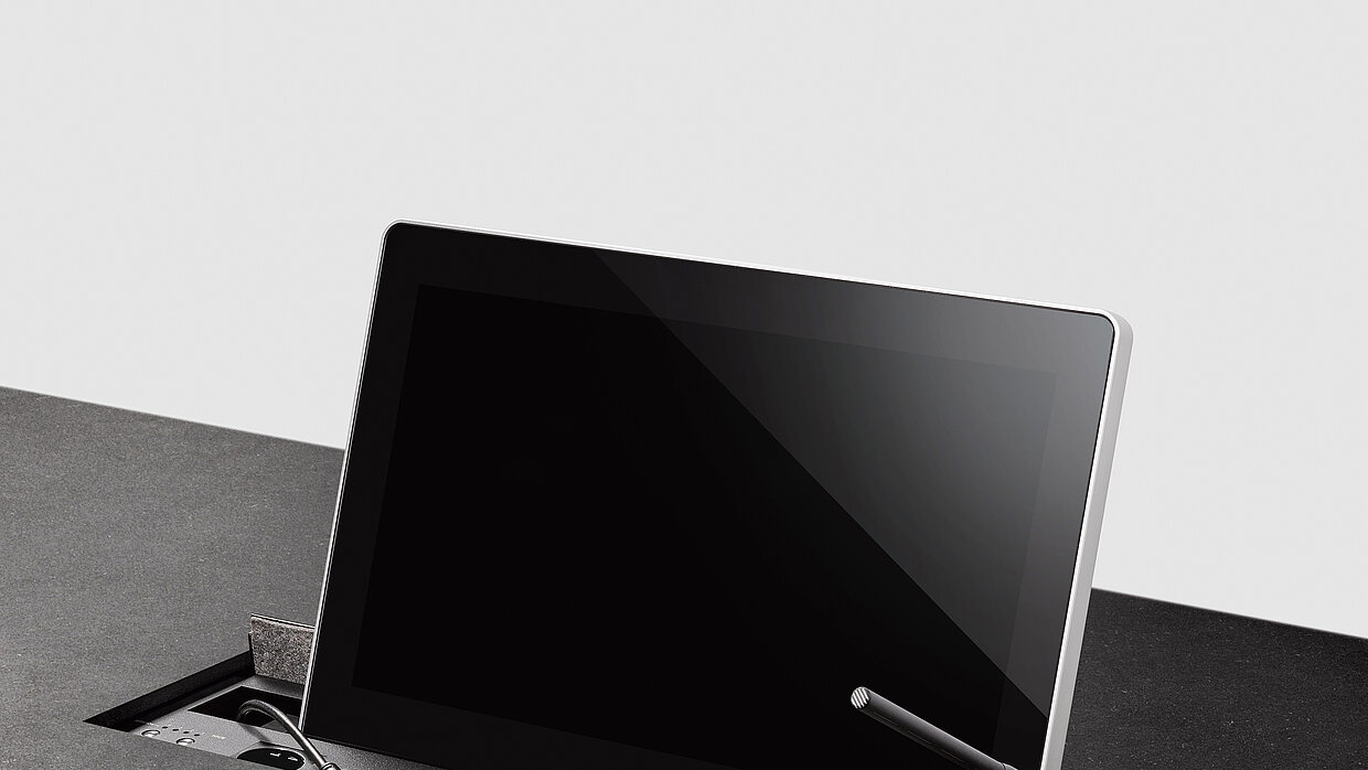 Nach der Verwendung gleitet der versenkbare Monitor Arthur Holm DB2 in einer ruhigen und gleichförmigen Bewegung zurück in eine in das Mobiliar eingearbeitete Versenkung. Mittels einer intuitiv bedienbaren Taste, die bündig neben dem Einzugsschlitz installiert ist, wird der Bildschirm ein- bzw. ausgefahren. Mit nur 20 mm Stärke ist der Bildschirm einfach zu integrieren, etwa in einen Besprechungstisch in Sitzungs- oder Konferenzräumen. Ist er nicht in Benutzung, bleibt der Bildschirm ohne Abdeckung in der Versenkung nahezu unsichtbar.