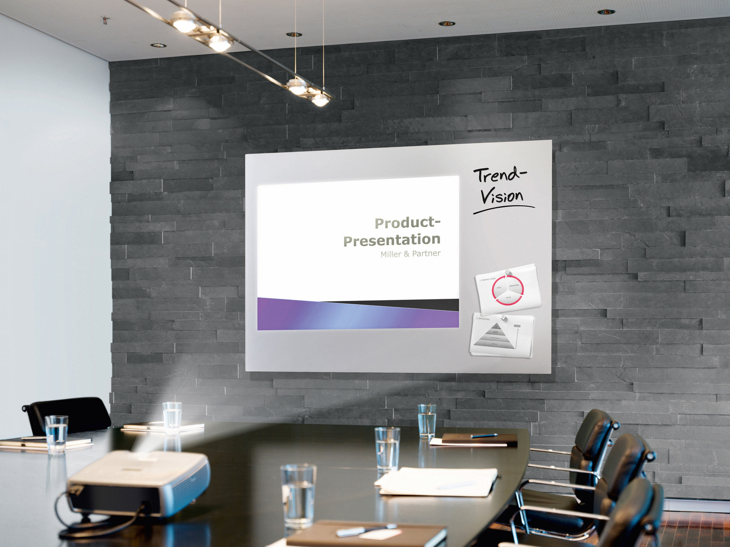 artverum projection besticht durch eine schlichte, hochwertige Gestaltung, die auch funktional punktet. Das Magnetboard eignet sich ebenso für Video-Präsentationen wie für die Beschriftung von Hand.