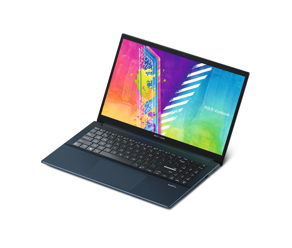 Das ASUS Vivobook Pro 14/15 - K3400/K3500/M3400/M3500 besitzt eine Formgebung, die durch gerade Linien und geometrische Elemente charakterisiert wird. Das schlanke Gehäuse mit Metalldeckel vermittelt Eleganz und ist im täglichen Einsatz sehr widerstandsfähig. Die Beschriftung der Tasten in kontrastierenden Farben und Schriftstilen erleichtert das Auffinden der Tasten und beschleunigt so das Tippen. Zusätzlich wird die Eingabetaste durch ein diagonales Muster am unteren Rand hervorgehoben. Dieses Stilelement findet sich im Logo auf dem Gehäusedeckel wieder.
