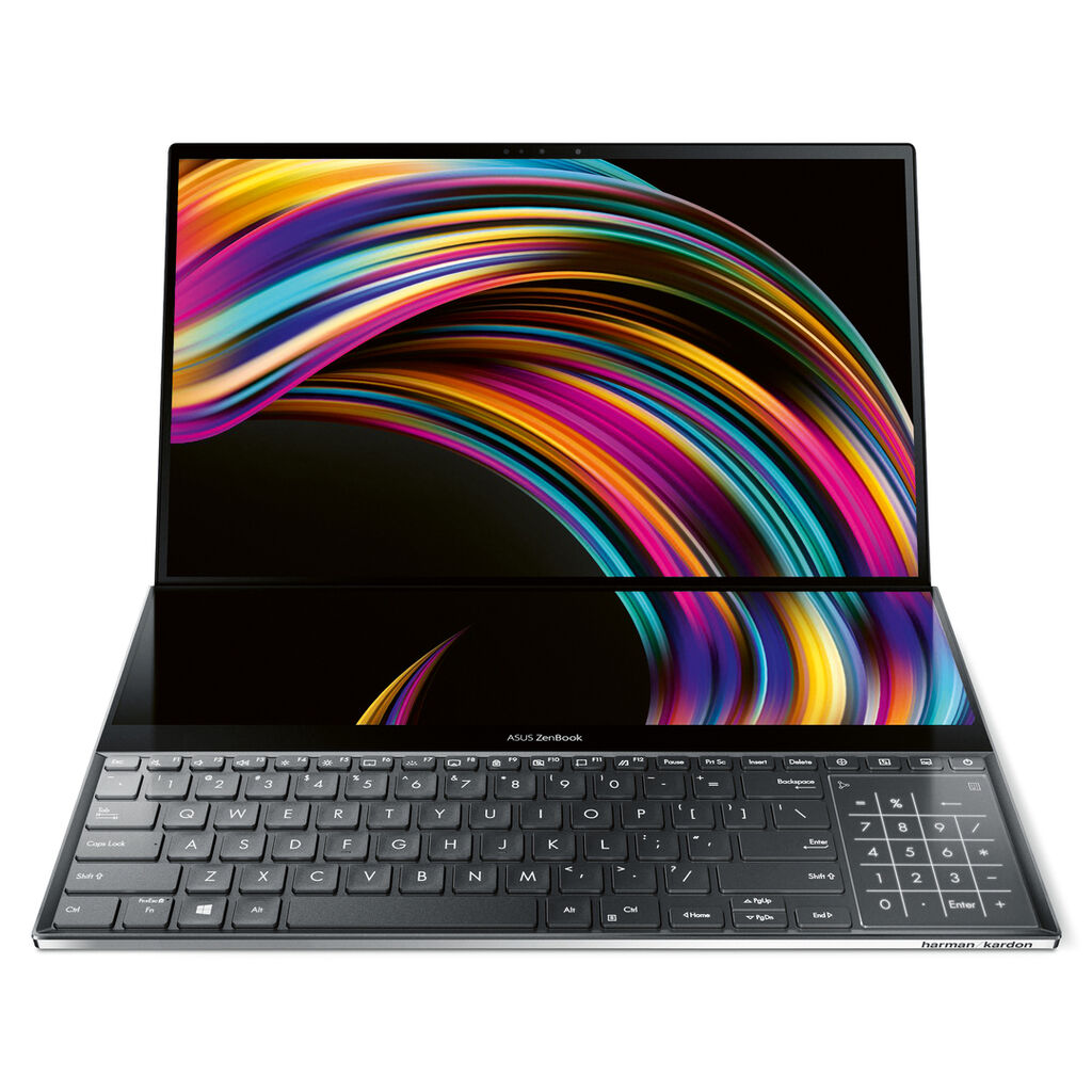 ASUS ZenBook Pro Duo UX481 und UX581 besitzen mit dem ScreenPad Plus ein zweites 4K-Display in voller Breite mit Touch-Funktionalität, das sich direkt an den Tastaturbereich anschließt. Es arbeitet nahtlos mit dem Hauptbildschirm zusammen, sodass der Benutzer z. B. Apps vom Hauptbildschirm zum ScreenPad verschieben kann. Das Gehäuse ist im Sinne der Zen-Philosophie gestaltet und vereint Ästhetik, Aerodynamik und menschliche Faktoren mit einer kantigen, kompakten Form.