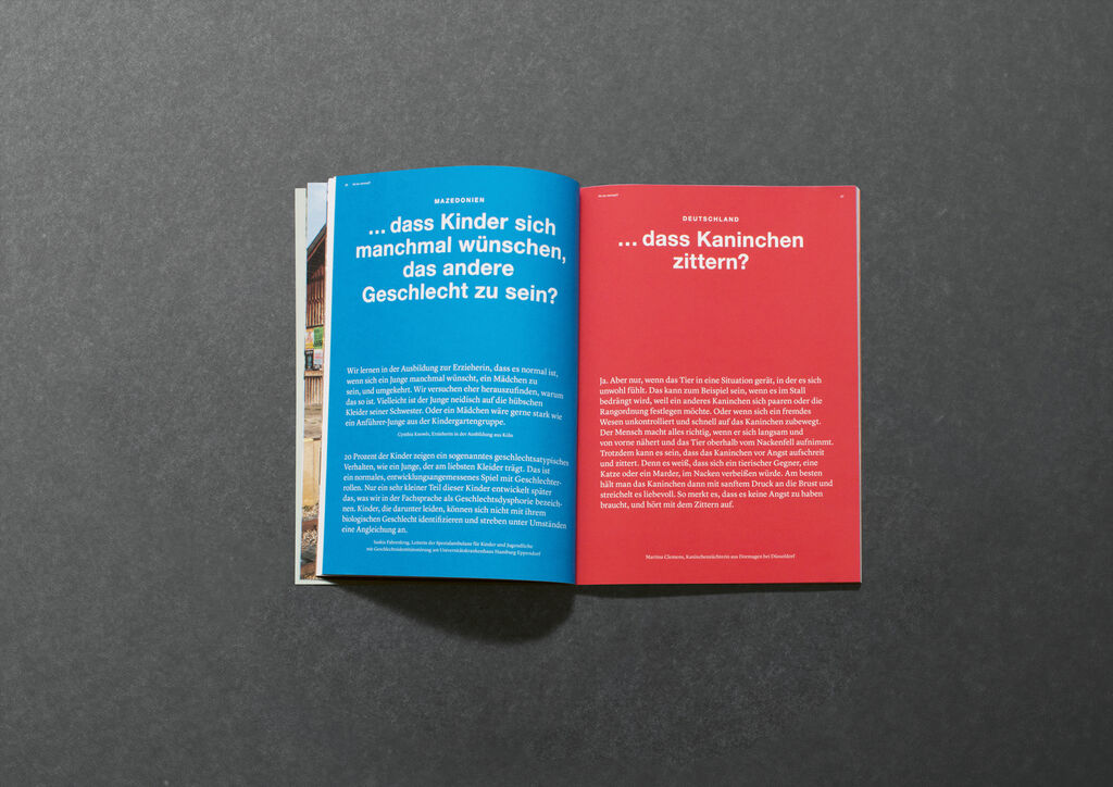 ATLAS is the B2B customer magazine of the Gebrüder Weiss logistics firm and is inspired by an interest in processes that go beyond the obvious. Issue 13 / 2019 deals with the topic of “normal” and focuses on the everyday and the unremarkable. Both the semantic meanings of “normal” and the creative application of the term are explored in the 92-page bilingual edition. As a rule, people consider what they know to be normal. But what is considered normal varies from generation to generation, from culture to culture. The magazine is distributed in the 30 countries in which the company has subsidiaries.
