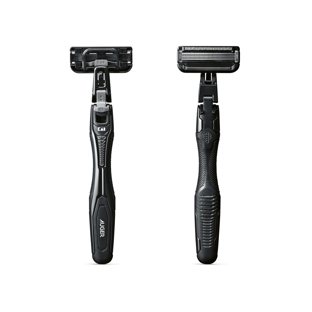 Der AUGER System Razor zeichnet sich durch seinen um 360 Grad drehbaren Rasierkopf aus und ist in Sachen Bewegungsfreiheit schwer zu schlagen. Jede der hochwertigen Klingen in dem 5-Klingen-System verfügt über eine separate Federung, was eine sanfte Anpassung an die Haut ermöglicht. Dass der Schwenkmechanismus ausschließlich in den Rasierkopf integriert ist, erlaubt eine kompakte Gestaltung. Der Griff ist mit einem variablen Kopfwinkel-Mechanismus ausgestattet, der das Rasieren unterhalb des Kinns und um den Hals herum erleichtert.