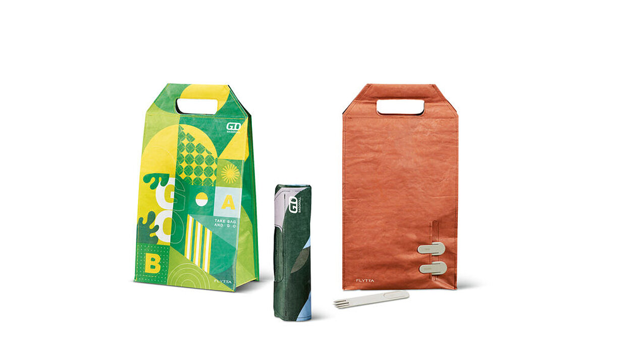 Die BAGOROLL besteht aus teils handgenähtem, waschbarem Vlies- und Nylon-Recyclingmaterial und bietet zahlreiche Anwendungsmöglichkeiten. So können Verbraucher sie als Take-away-Beutel für Essen und die eingesteckten flachen Gerätschaften als Besteck nutzen. Der Griff dient der einfachen Befestigung. Ein Silikonstreifen hilft dabei, die Tasche schnell aufzurollen und wegzupacken. Zudem lässt er sich herausziehen und als Tassenmanschette für Heißgetränke verwenden. Der Rest der Tasche kann indessen als Platzset auf dem Tisch fungieren.