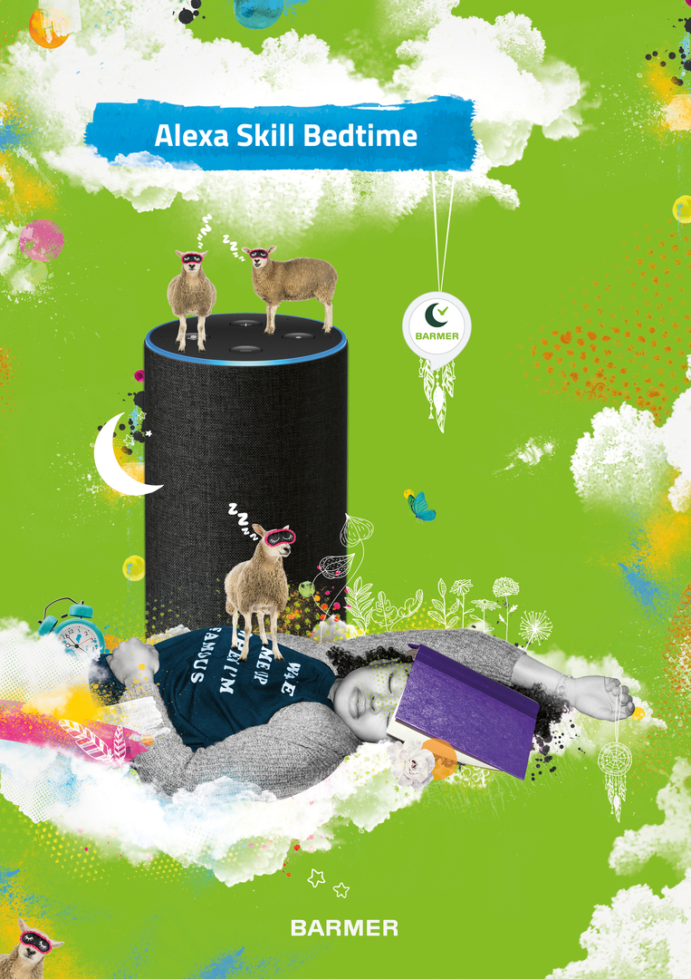Barmer, one of Germany’s largest statutory health insurance providers, has developed the Amazon Echo skill “Schlafenszeit” (Bedtime), which is aimed at helping users fall asleep in an auditory manner, without technology distracting from the essential. Users control the application solely by their voice and can choose via simple voice commands between four different sleep aids: soft pieces of music with spherical sounds, relaxing sounds such as the crackling of a fireplace, imaginative dream journeys, or “counting sheep”. Every audio file has been approved and optimised by sleep experts.