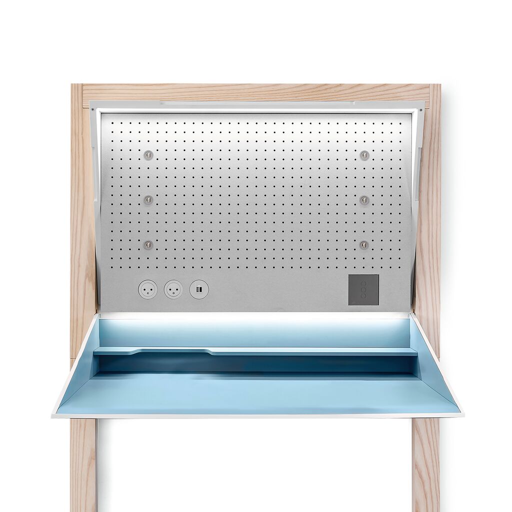 Der speziell für das Homeoffice konzipierte Beaktor besteht aus drei Teilen: einem starken Holzrahmen, einer ausklappbaren, antibakteriellen Arbeitsfläche und einem Bedienfeld mit hervorragenden akustischen Eigenschaften und einer gelochten Oberfläche. Die platzsparende Gestaltung ermöglicht es, auch in kleinen Räumen entspannt zu arbeiten und zugleich Bürostandards einzuhalten. Dafür sorgen unter anderem die integrierte Beleuchtung, USB-Anschlüsse, Steckdosen und verschiedene Accessoires, mit denen Nutzer ihre Zweitbildschirme oder Laptops individuell positionieren können.