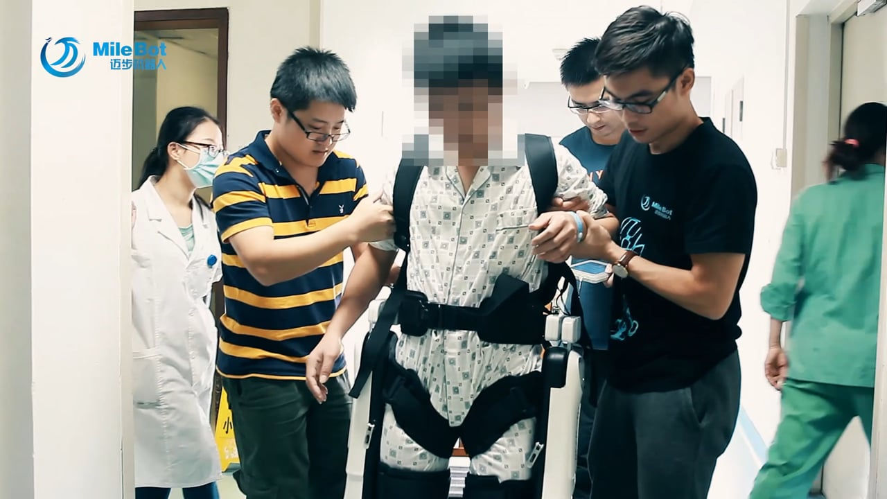 The hip width, thigh size and shank length can be adjusted to fit different body profiles. More than 20 different sensors are implemented to monitor the gait status during training. Bilateral Exoskeletonal Assistive Robot overcomes the limitations of traditional manual rehabilitation training by reducing the input to allow more patients the opportunity to receive treatment. Proper robotic assistance is delivered based on the sensor feedback to achieve the most effective rehabilitation.