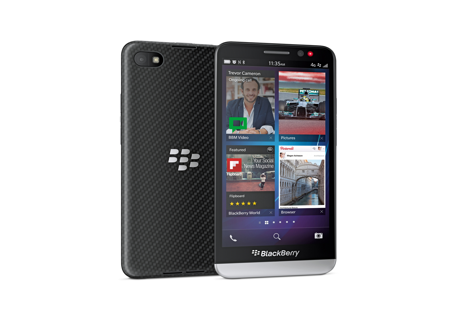 Beim BlackBerry Z30 steht das großflächige Display aus poliertem Corning Gorilla Glass, das eine randlose Nutzererfahrung garantiert, im Mittelpunkt. Die Rückseite des Smartphones wird durch einen Prozess hergestellt, bei dem Garne aus Glasfasern in Harz ausgehärtet werden – dadurch entsteht ein starkes und sehr dünnes Material. Am Ende wird darauf eine Soft-Touch-Beschichtung aufgetragen, die eine glatte Haptik und einen besseren Halt gewährleistet.