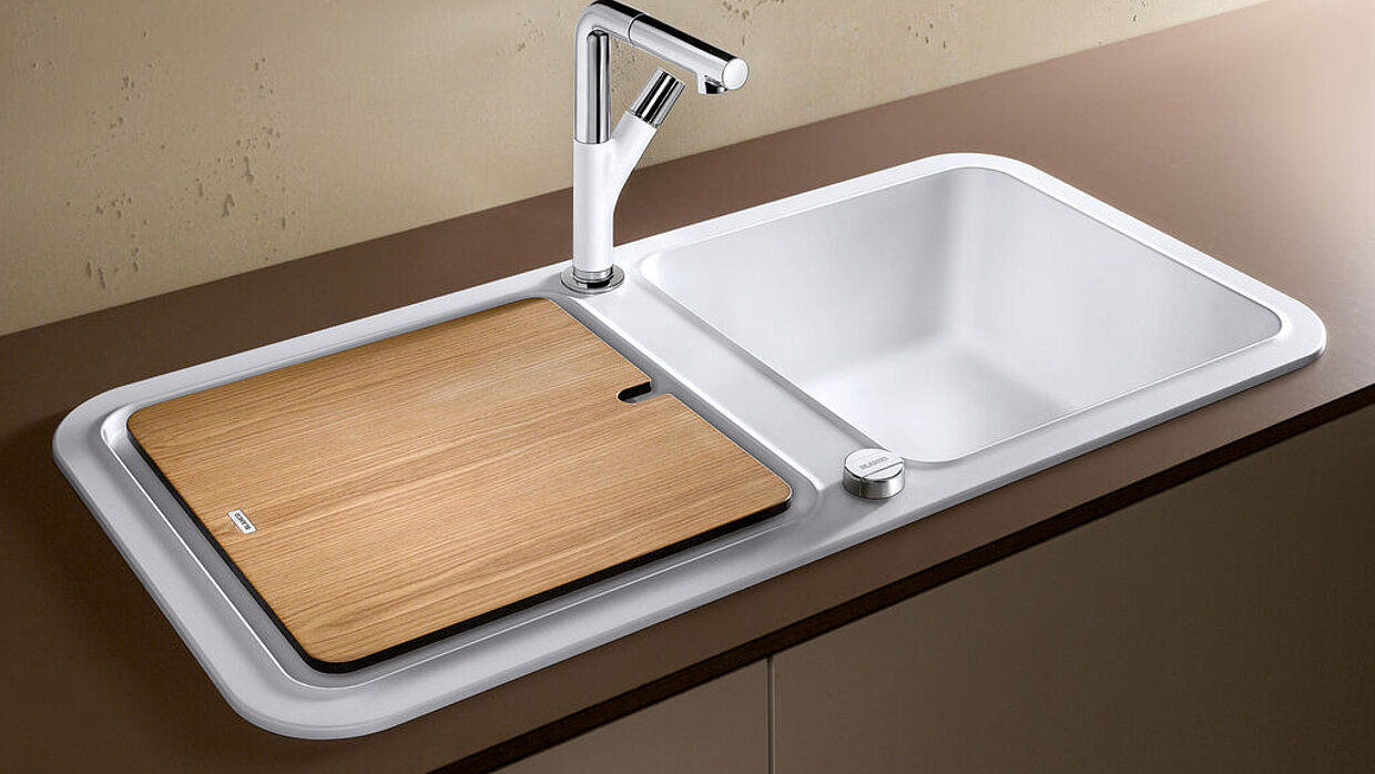 Authentische Materialästhetik und ausgeprägte Manufaktur-Merkmale kennzeichnen die Küchenspüle Blancoattika. Die außergewöhnliche Randgestaltung mit ihrer massiven Anmutung und den filigran gebogenen Eckradien dient als formales Leitmotiv und grenzt funktional die Aktivzone des Nassarbeitsbereichs ab. Durch das Zusammenspiel von absenkbarer Armatur und verschiebbarem Arbeitsbrett aus hochwertigem Esche-Compound lässt sich das Aufsatzbecken abdecken.