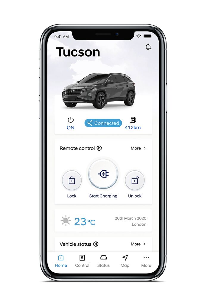 The Bluelink app, Hyundai Motor’s connected service, allows users to experience on their mobile device the functions previously available only while in the car. It starts the car when the user is about to set off, presets the A/C or heat functions depending on the weather and sends the destination address to the car’s navigation system based on the user’s schedule. It can also be customised as a remote control with frequently used functions. In addition, it syncs with external services like weather, calendar and music streaming to control all functions needed for mobility.