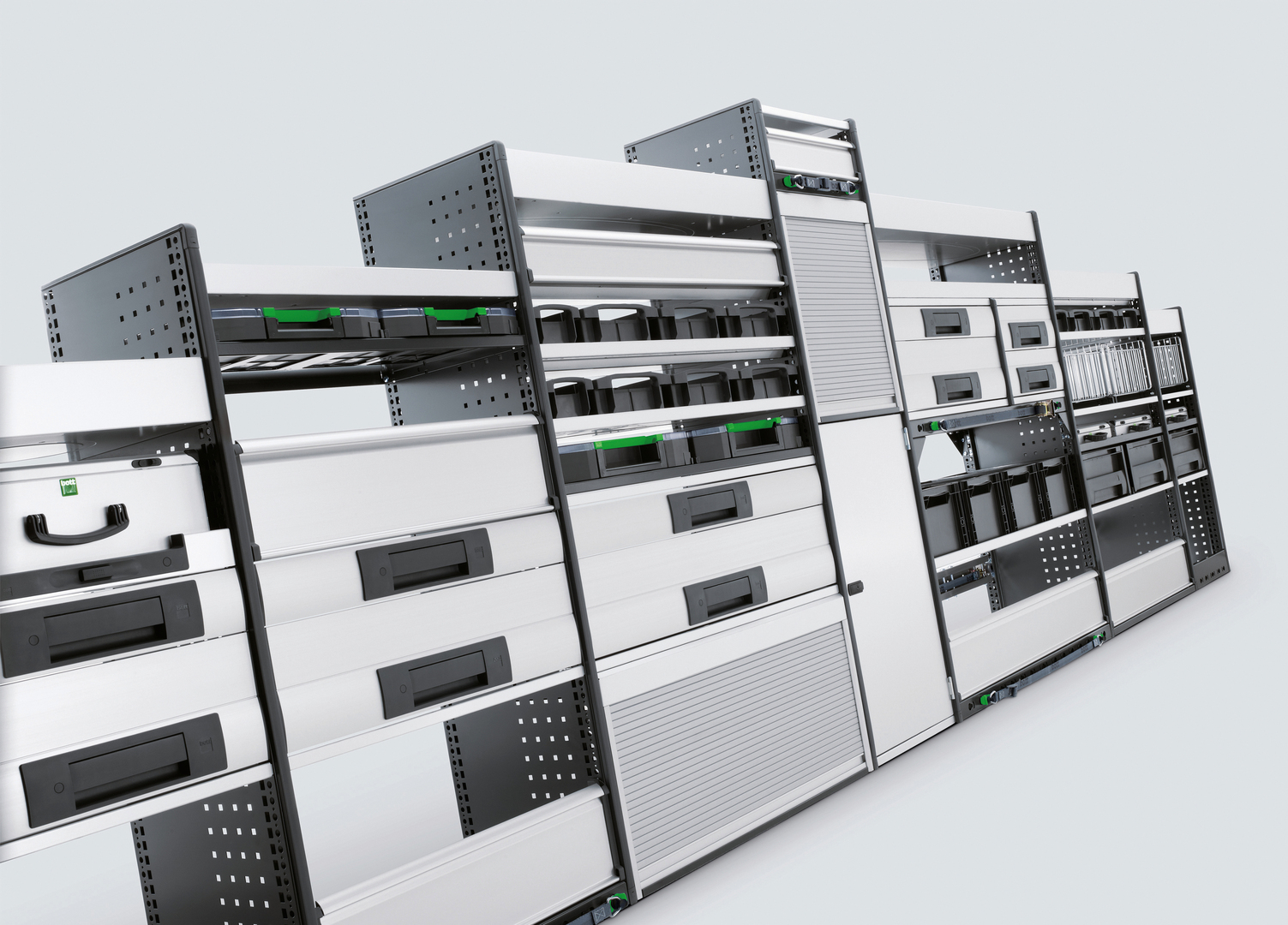 Die Fahrzeugeinrichtung aus dem Hause Bott ist ein variables Ordnungssystem für Montagefahrzeuge, dessen durchdachte Gestaltung und hochwertige Ausführung überzeugt. Die ergonomische Anordnung der leichtgängigen Auszüge sorgt für ausgezeichnete Bedienbarkeit. Ein intelligenter Materialmix aus eloxiertem Aluminium, schlagfestem Kunststoff und pulverbeschichtetem Stahl ist das Geheimnis höchster Stabilität bei minimalem Gewicht, was sich vorteilhaft auf die Sicherheit, den Gebrauch und den Kraftstoffverbrauch auswirkt. Die bott vario vermittelt einen ausgesprochen hochwertigen Eindruck.