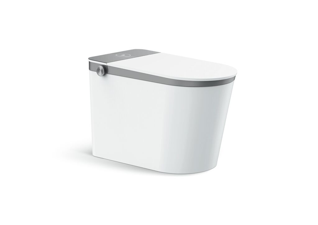 Die kontrastvolle Farbgebung verleiht dem Dusch-WC BRIGHT sein modernes Erscheinungsbild. Ein anthrazitfarbener Rand umfängt den weißen Korpus. Nach jeder Nutzung wird die WC-Schüssel automatisch sterilisiert. Das flache Display aus gehärtetem Glas zeigt den Fortschritt des integrierten Sterilisationsprozesses an. Die Basisanwendungen lassen sich intuitiv über den Drehregler an der Seite steuern. Eine smarte Heizfunktion passt die Wassertemperatur und die Leistung der Sitzheizung automatisch den Jahreszeiten an.