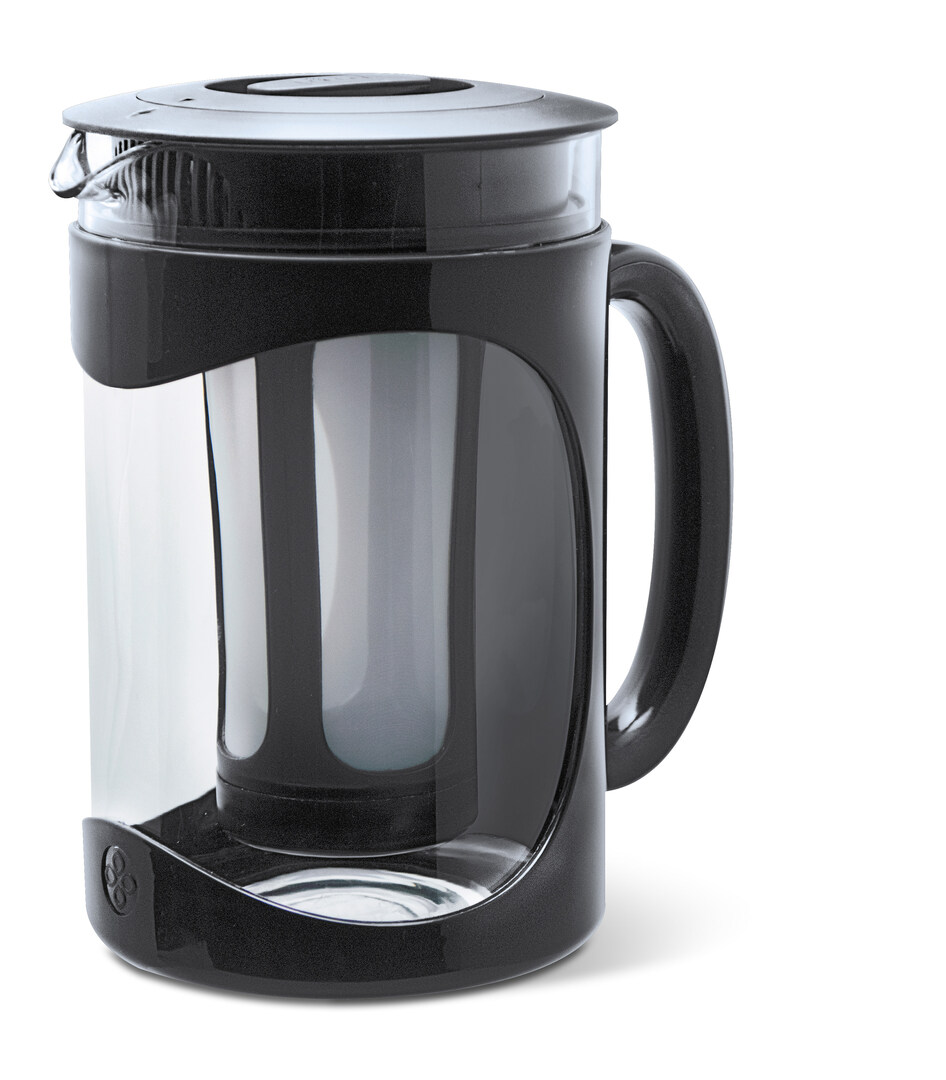 Der Burke Cold Brew Coffee Maker bietet eine einfache Möglichkeit, kaltgebrühten Kaffee aufzugießen. Die kompakte Kanne mit rutschfestem Silikonboden passt in die Kühlschranktür. Das Kunststoffgerüst um die Kanne schützt das Glas und bietet zudem einen robusten, ergonomischen Griff. Der Deckel mit Silikondichtung und geschlitzter Öffnung verhindert Spritzen und Auslaufen während des Ausgießens über die tropffreie Tülle. Der Boden des Brühfilters lässt sich für die Reinigung in der Spülmaschine abschrauben.