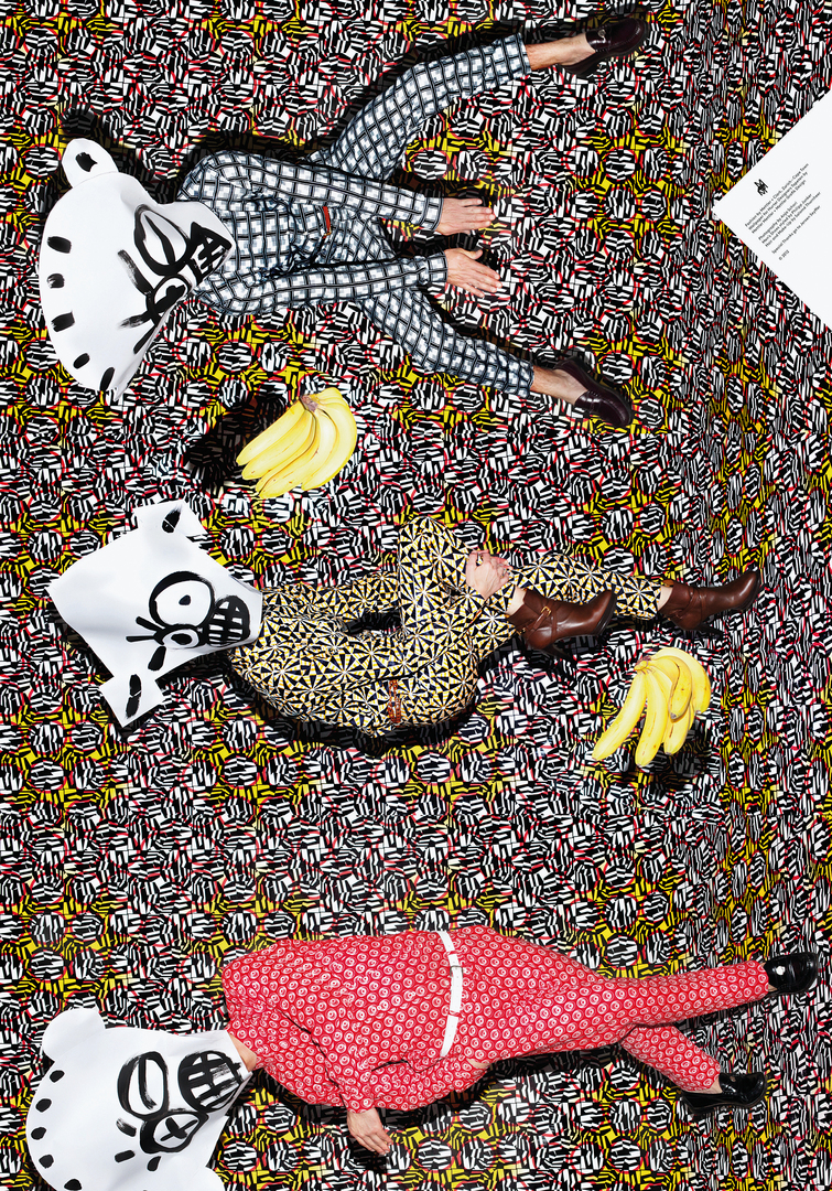 Wax-print fabrics form an essential part of West and Central African culture. This campaign was inspired by the distinctive patterns and colours characteristic of these cultures and has reinterpreted them to design a four-part wallpaper collection for Hurter Designers Tapeten. The traditional African style is contrasted with computer-generated design elements to lend the collection a dazzling effect and create an exciting setting. Complemented by three imaginatively clothed figures wearing masks, the richly detailed patterns aim to lead the beholder right back to where everything began: Africa.