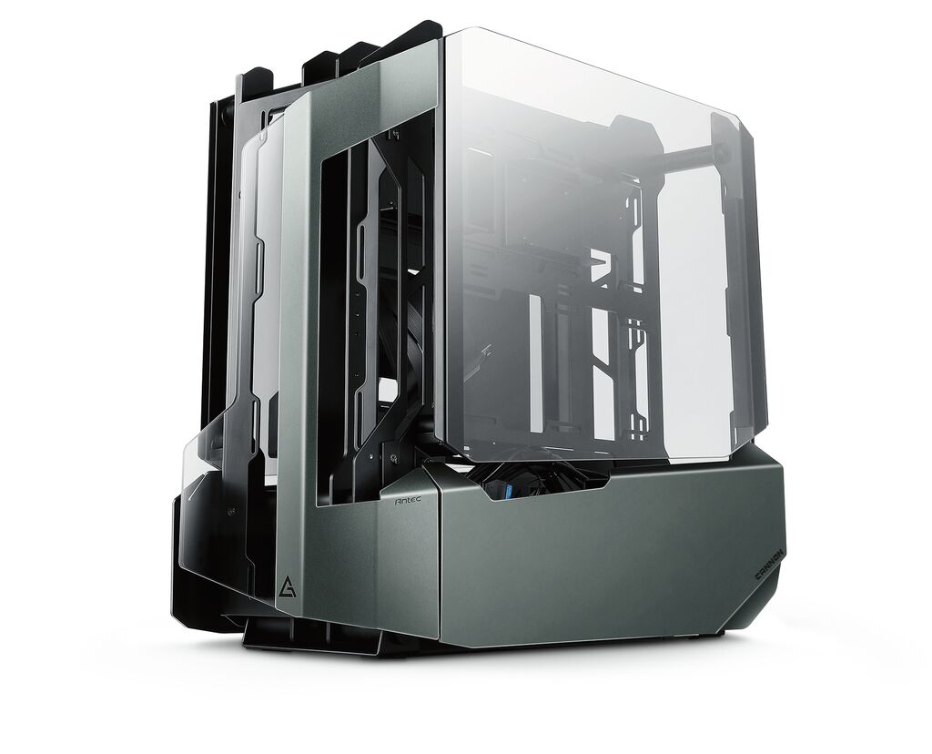 Das Open-Frame-PC-Gehäuse CANNON besitzt eine flexible Struktur, die Konfigurationen individueller Wasserkühlungssysteme für Prozessor und Grafikkarte ermöglicht. Es verfügt über viel Platz für das Kabelmanagement und vereinfacht die Installation von Hardwarekomponenten. Durch die aufsteckbare Hartglasplatte bietet es vielfältige Möglichkeiten, das System zu präsentieren. Das Gehäuse besteht aus einer Aluminiumlegierung, die Wärme gut ableitet und leicht zu recyceln ist.