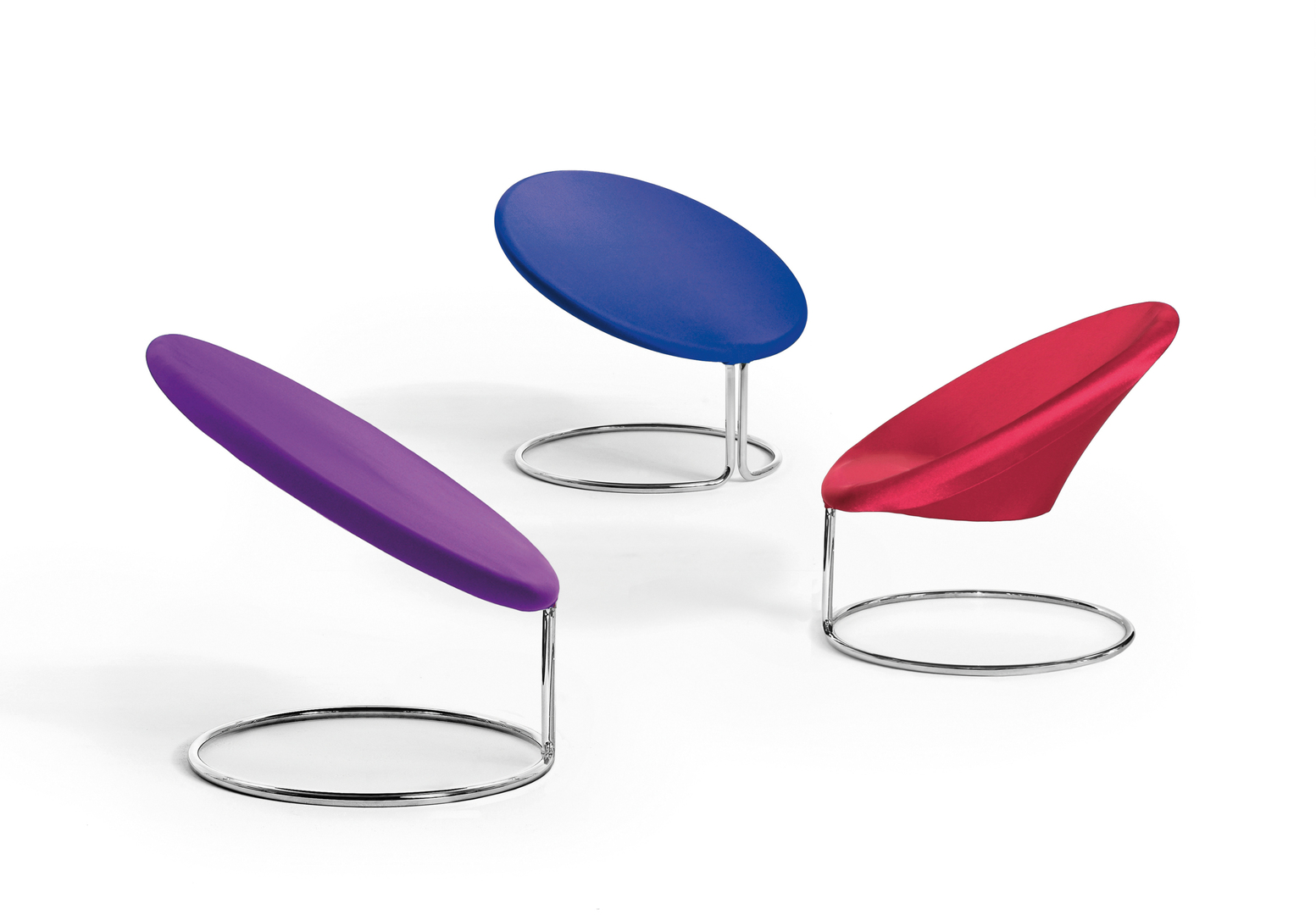 Der Lounge-Sessel Cobra hat eine schräge Sitzfläche aus dehnbarem Material, welches sich der Körperkontur anpasst und so den Sitzkomfort steigert. Sobald der Benutzer sich auf die Schräge setzt, versinkt er in ihr wie in einem Kissen. Darüber hinaus wirkt der Sessel klar strukturiert und farbenfroh. Er steht auf einer federnden Konstruktion aus Edelstahl oder verchromtem Stahlrohr, die ein angenehmes Schwingen ermöglicht und der Bewegung des Nutzers folgt. Die farbigen Bezüge sind austauschbar. Die Sessel lassen sich platzsparend lagern.