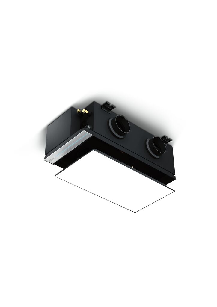 Colmo KT ist eine neuartige Klimaanlage für Küche und Bad mit einem cleveren Gestaltungsansatz. Im Gegensatz zu herkömmlichen Klimaanlagen verwendet sie die Wärmepumpentechnologie, die energiesparender und umweltschonender ist. Sie wird in die Decke integriert und besitzt an der Unterseite ein LED-Lampenfeld, sodass sie von Personen, die sich im Raum aufhalten, kaum wahrgenommen wird. Dank ihres Außenluftanschlusses können Küchendämpfe oder schlechte Gerüche nicht in den Luftreinigungskreislauf gelangen.