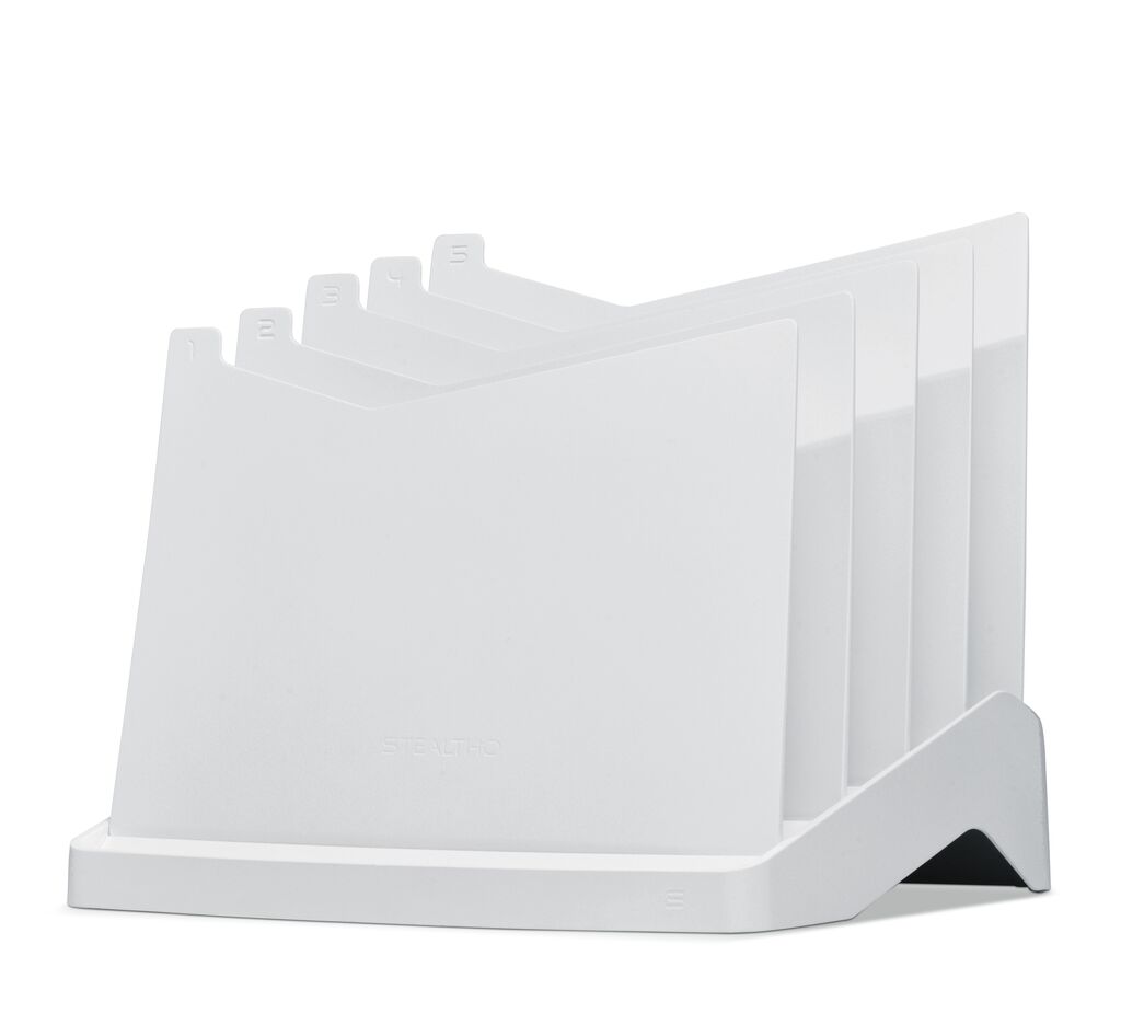 Das Ziel der Gestaltung dieses Organizers ist es, einen stilvollen und aufgeräumten Arbeitsbereich zu schaffen und gleichzeitig die Produktivität zu steigern. Der praktische Ordnungshelfer lässt sich sowohl auf dem Schreibtisch aufstellen als auch an der Wand aufhängen. Er besteht aus einer Basis und fünf separaten Fächern, die Unterlagen im Letter- und A4-Format fassen. Auf der vorderen Ablage können Büromaterialien und elektronische Geräte aufbewahrt werden. Nutzerfreundlich ist, dass sich der Organizer einfach und schnell zusammenbauen lässt.