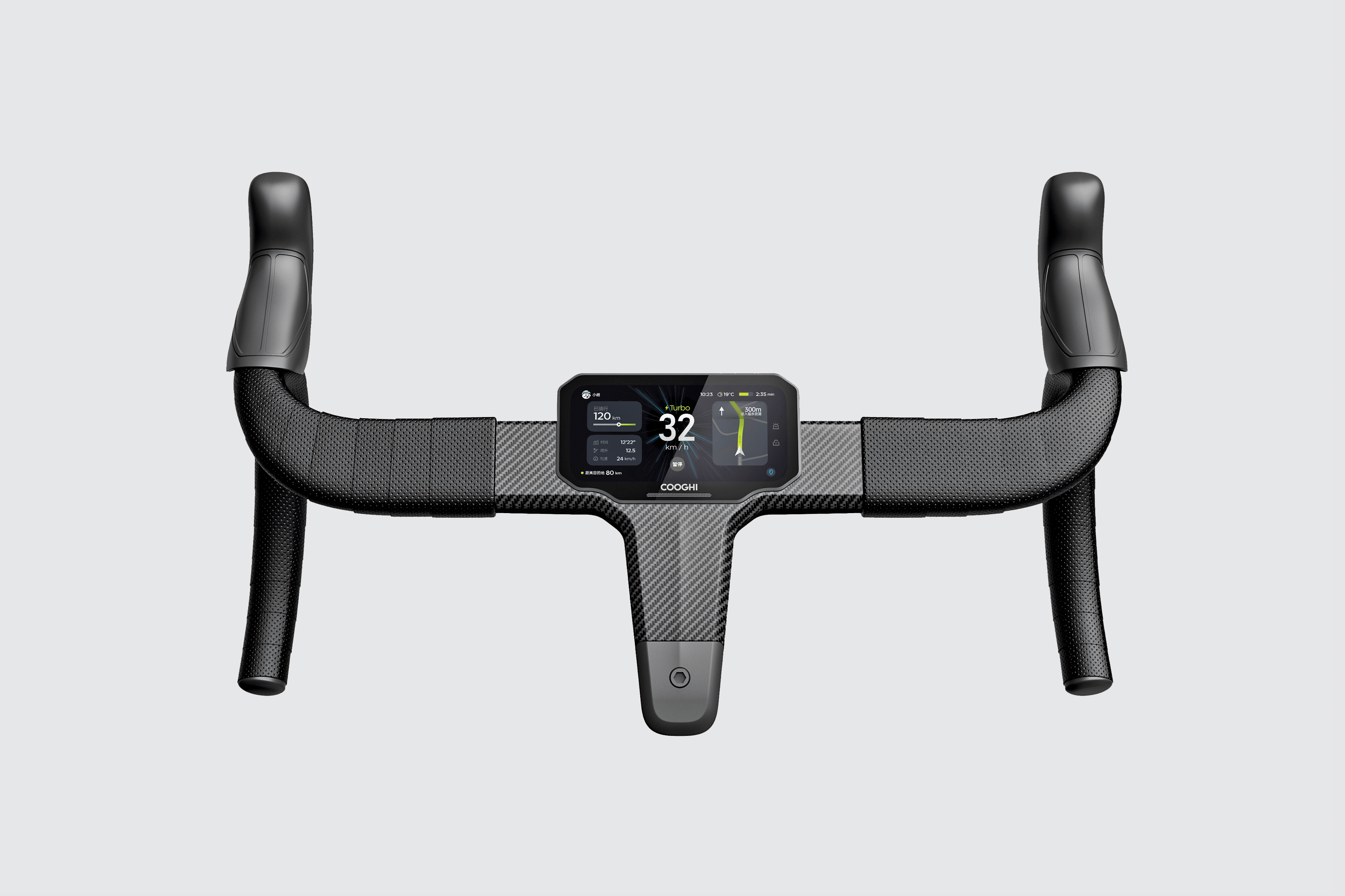 Cooghi Smart Handlebar features an integrated, streamlined, and wind-resistant design combining a bike computer, navigation, headlight, bell, sensors, and an AMOLED touchscreen that ensures clear visibility in any setting. Its real-time sensor data is synced to the cloud for intelligent analysis, and built-in GPS and AI assistant enable hands-free control of maps, data, and lighting for greater safety and convenience.