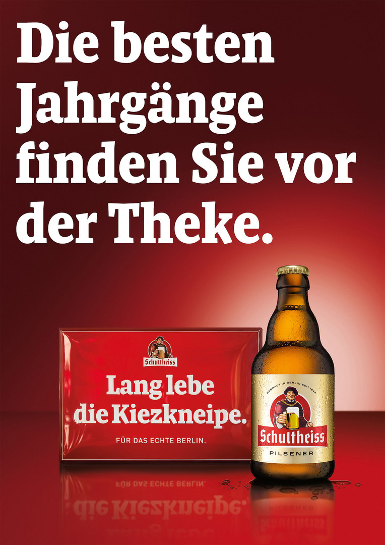 After the fall of the Berlin Wall and the dramatic changes that the city has experienced ever since, many local corner pubs have closed down, making way for fashionable bars and clubs. The local beer brand Schultheiss is also under threat. With the slogan “Long live the corner pub”, this advertising campaign positions corner pubs as historic monuments and as part of Berlin’s local cultural heritage. Outdoor campaigns, promotions, events such as the “Night of the Corner Pub”, public relations, as well as digital and social media all aim to put the corner pub back in the spotlight.