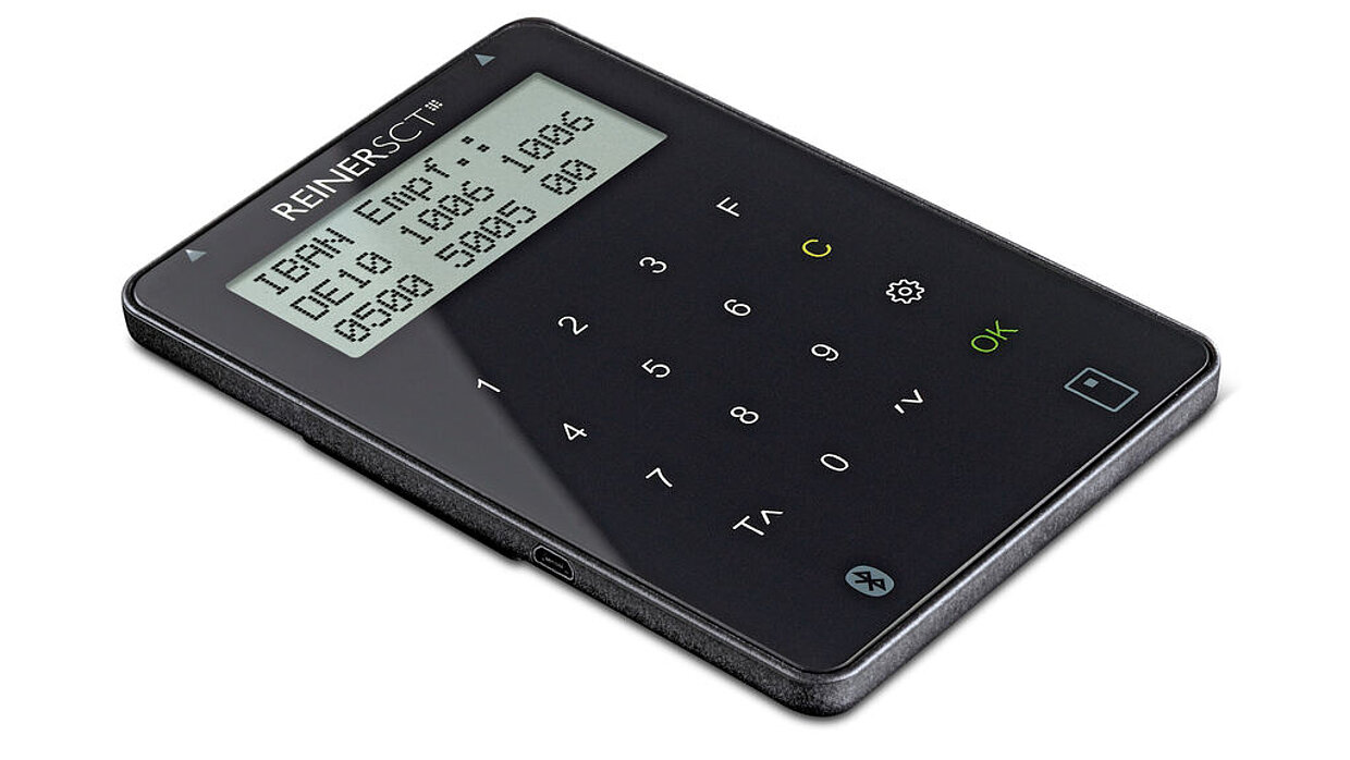 Der cyberJack RFID basis ist ein Lesegerät für RFID-Karten. Die funktionale, unaufdringliche Gestaltung und das platzsparende Gehäuse lassen die Nutzung in verschiedenen mobilen und ortsgebundenen Szenarien zu. Darauf abgestimmt gibt es zwei Möglichkeiten, die Karte in das Gerät zu stecken: entweder so, dass sie flach auf dem Gerät liegt, oder sie wird schräg eingesteckt. Bei der Schräg- stellung kann der User die Karte besser greifen und sie bei Bedarf besser ablesen.